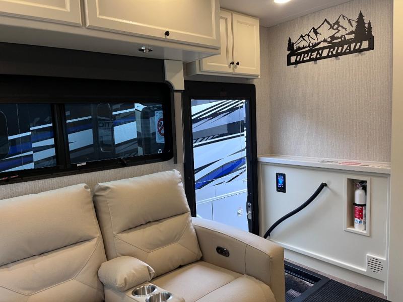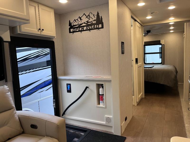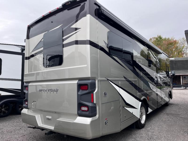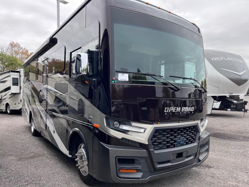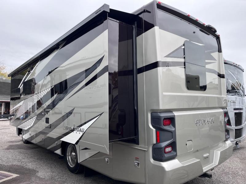 Every one of these Tiffin Motorhomes Open Road Allegro Class A gas motorhomes are ready to go when ever you are! A Ford 7.3L V8 engine powers these units and a durable, yet lightweight, tubular aluminum wall skeleton holds them together. They are beautifully designed with handcrafted cabinetry and a panoramic kitchen galley window for breathtaking views. A couple electronic features you will appreciate include an exterior TV with a soundbar and a Spyder multiplex system, plus there are two 13.5k BUT AC units to keep you cool on those hot summer days. The color back-up camera and side-view cameras will make parking easier than ever, and you'll appreciate hydraulic leveling jacks with a control panel for hassle-free set up. You'll love the new decor options, along with the new Generation 12 exterior color paint options, plus a 10" detachable touchscreen with a media center!