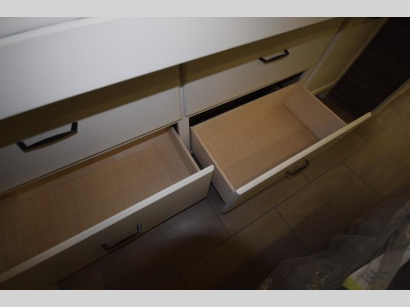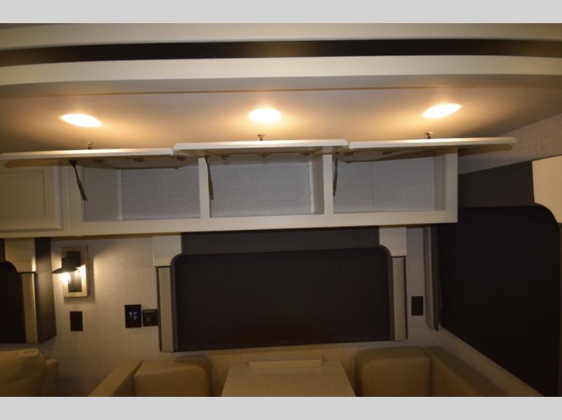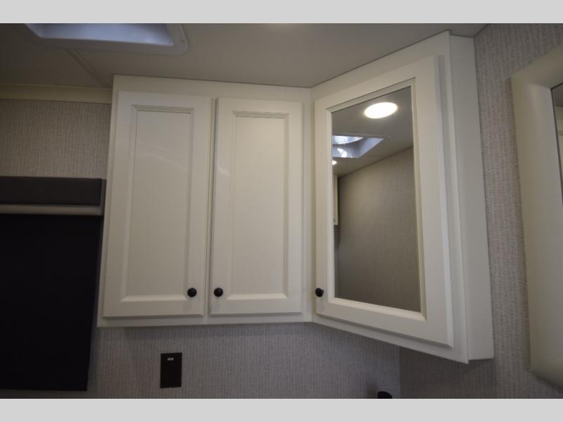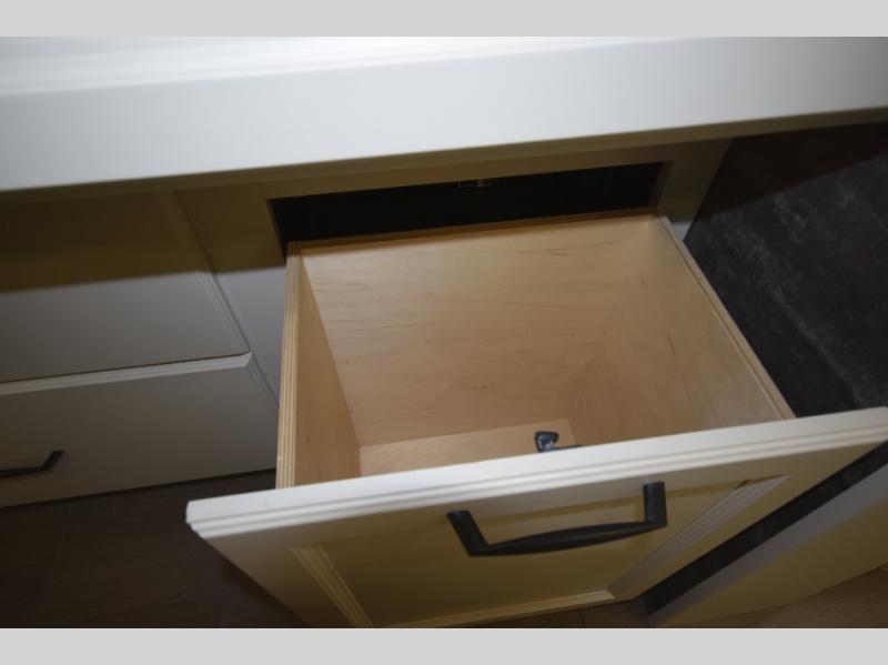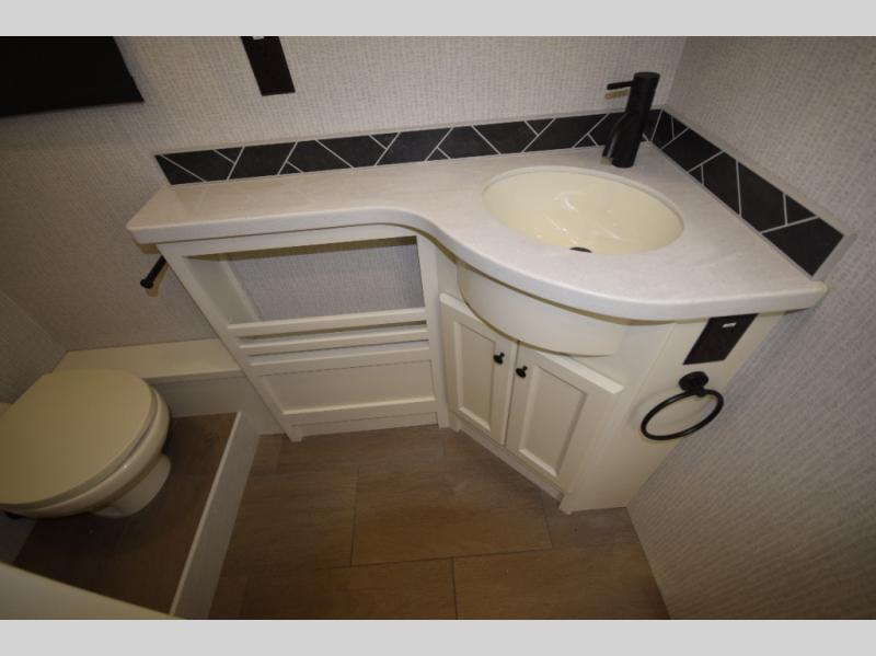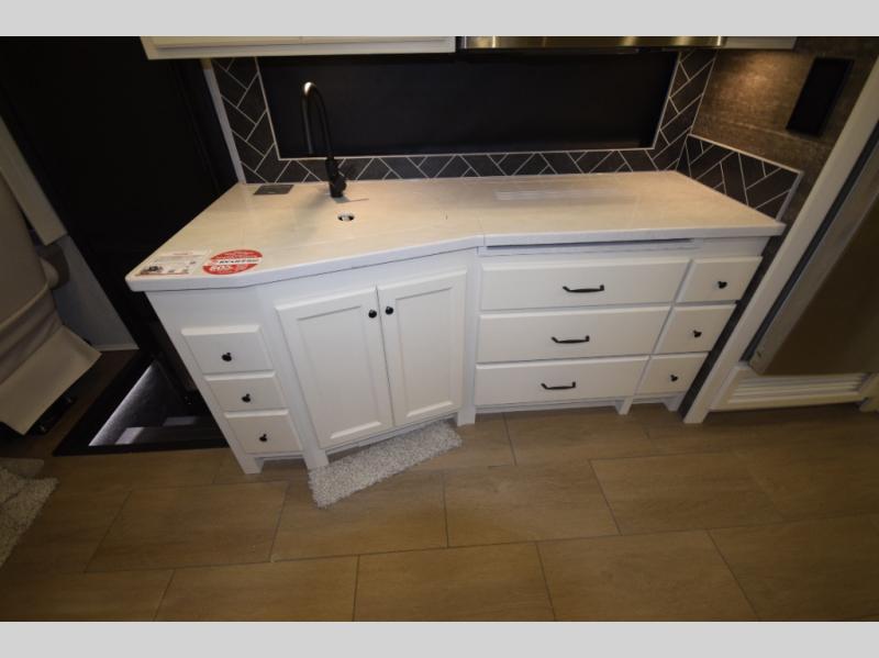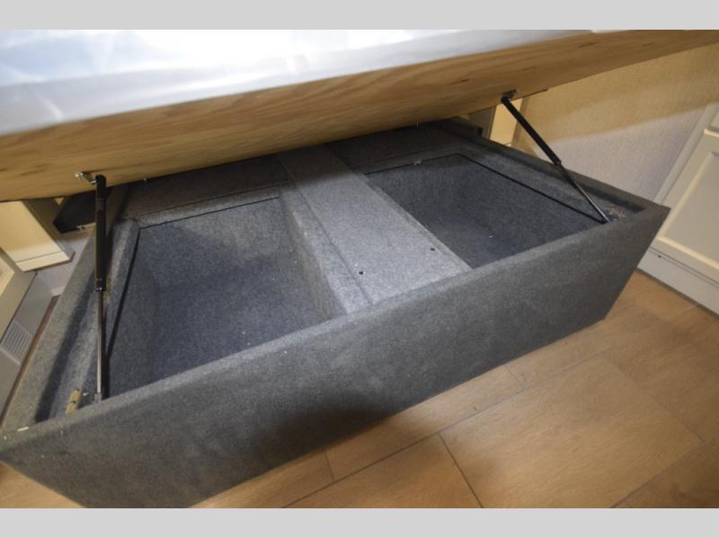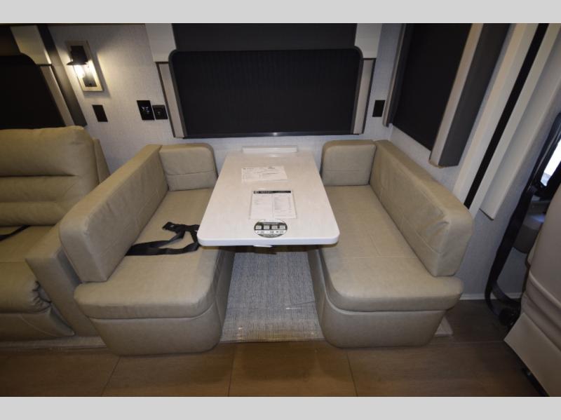 The booth dinette offers a cozy space for meals, and it conveniently converts into a sleeper at night. The flip and fold sofa bed provides additional sleeping space, and for even more options, there’s an optional drop-down front bunk or theater seating if you prefer comfort without the extra sleeping space.