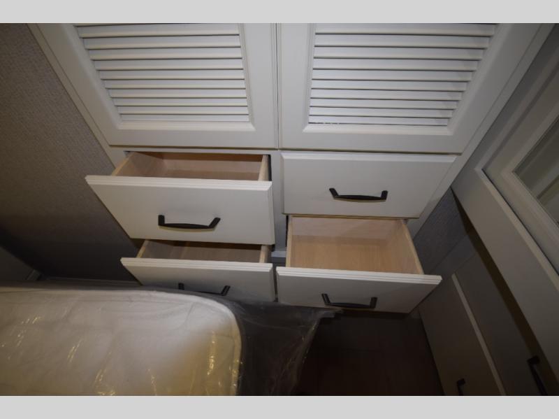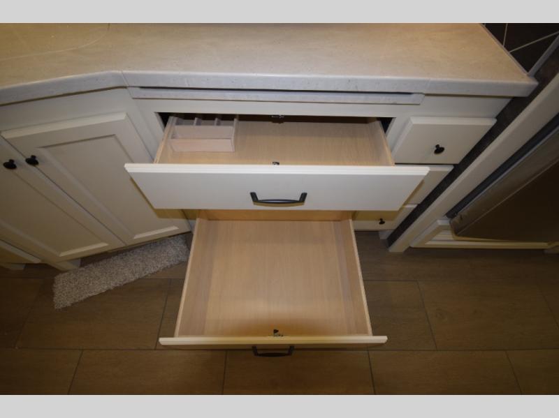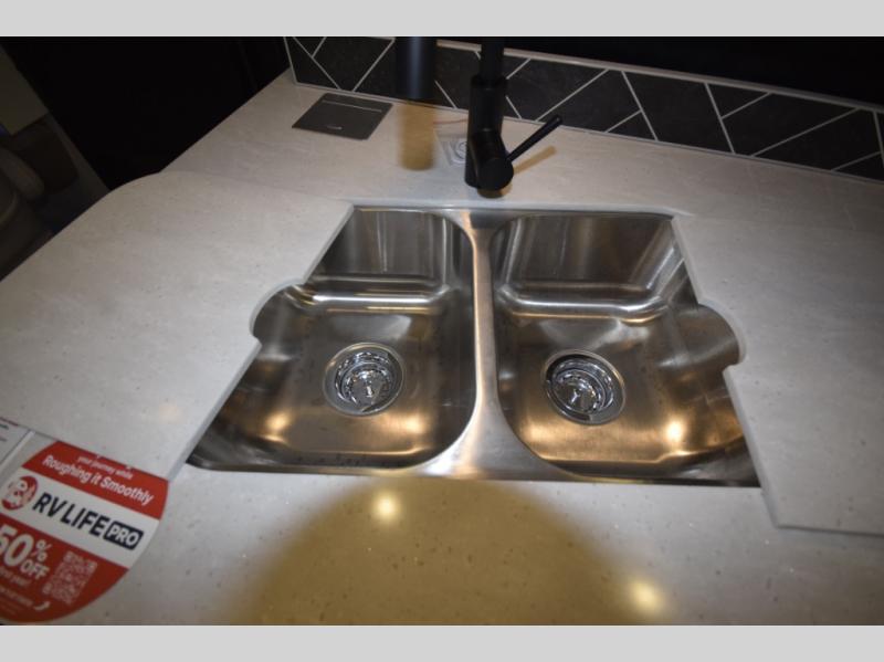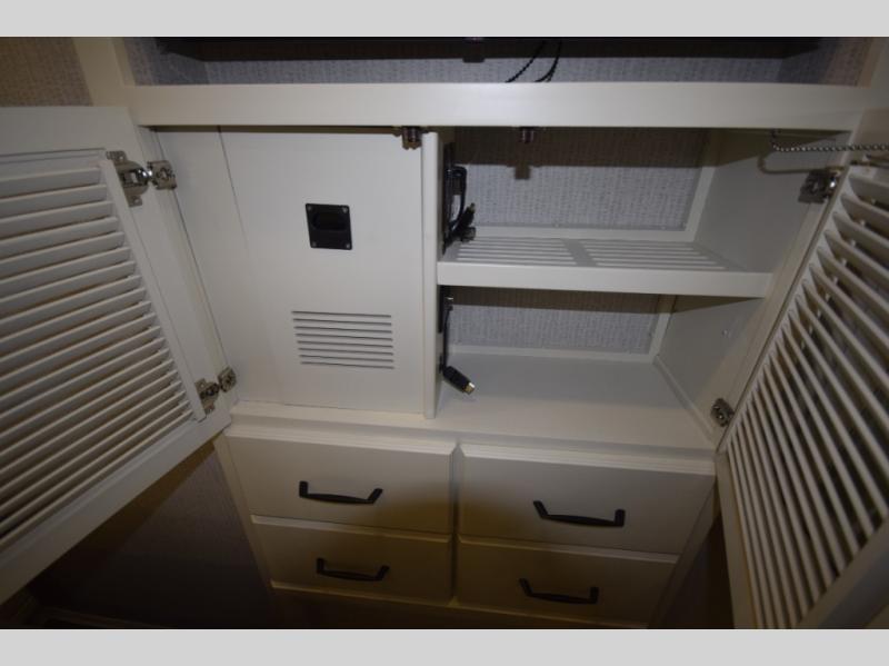Thanks to the color back-up camera and side-view cameras, parking and maneuvering are easier than ever. The hydraulic leveling jacks with a control panel make set-up a breeze at every destination. And with two 13.5k BTU AC units, you’ll stay cool and comfortable even during the hottest summer days.