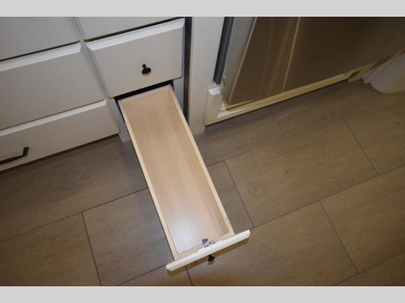 Rear Private Bedroom – Enjoy your own peaceful retreat with a king bed slide and an egress window, perfect for natural light and fresh air. The bedroom also includes a wardrobe with drawers for extra storage and an optional combo washer/dryer for added convenience.