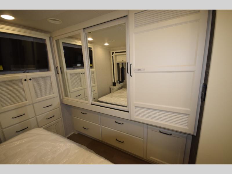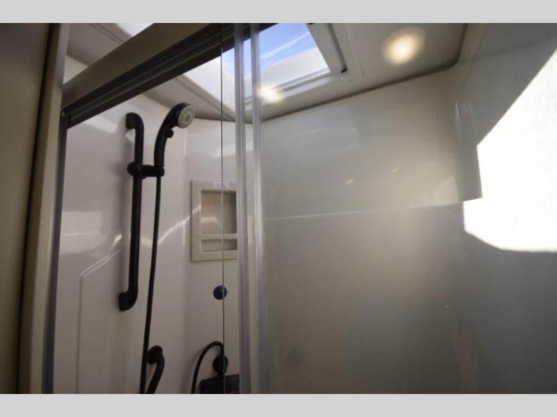 The Tiffin Allegro 32 SA is designed with your comfort in mind. The split-style bath allows two people to freshen up simultaneously—one in the shower and the other in the private toilet and sink area. This setup is perfect for busy mornings or when you're traveling with family or friends.