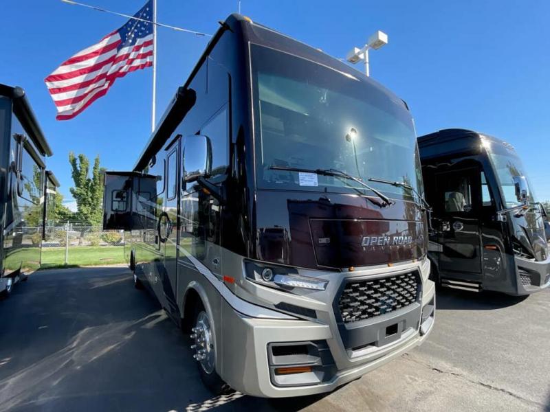 Every one of these Tiffin Motorhomes Open Road Allegro Class A gas motorhomes are ready to go when ever you are! A Ford 7.3L V8 engine powers these units and a durable, yet lightweight, tubular aluminum wall skeleton holds them together. They are beautifully designed with handcrafted cabinetry and a panoramic kitchen galley window for breathtaking views. A couple electronic features you will appreciate include an exterior TV with a soundbar and a Spyder multiplex system, plus there are two 13.5k BUT AC units to keep you cool on those hot summer days. The color back-up camera and side-view cameras will make parking easier than ever, and you'll appreciate hydraulic leveling jacks with a control panel for hassle-free set up. You'll love the new decor options, along with the new Generation 12 exterior color paint options, plus a 10" detachable touchscreen with a media center!