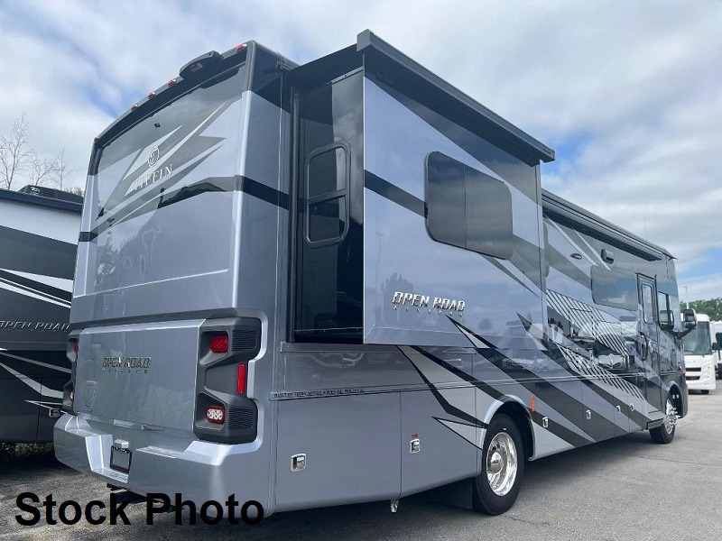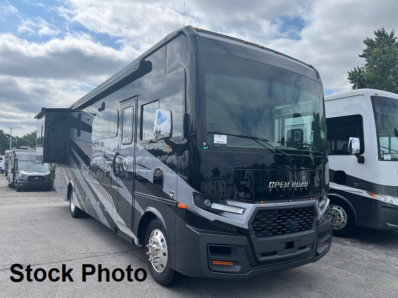 Every one of these Tiffin Motorhomes Open Road Allegro Class A gas motorhomes are ready to go when ever you are! A Ford 7.3L V8 engine powers these units and a durable, yet lightweight, tubular aluminum wall skeleton holds them together. They are beautifully designed with handcrafted cabinetry and a panoramic kitchen galley window for breathtaking views. A couple electronic features you will appreciate include an exterior TV with a soundbar and a Spyder multiplex system, plus there are two 13.5k BUT AC units to keep you cool on those hot summer days. The color back-up camera and side-view cameras will make parking easier than ever, and you'll appreciate hydraulic leveling jacks with a control panel for hassle-free set up. You'll love the new decor options, along with the new Generation 12 exterior color paint options, plus a 10" detachable touchscreen with a media center!