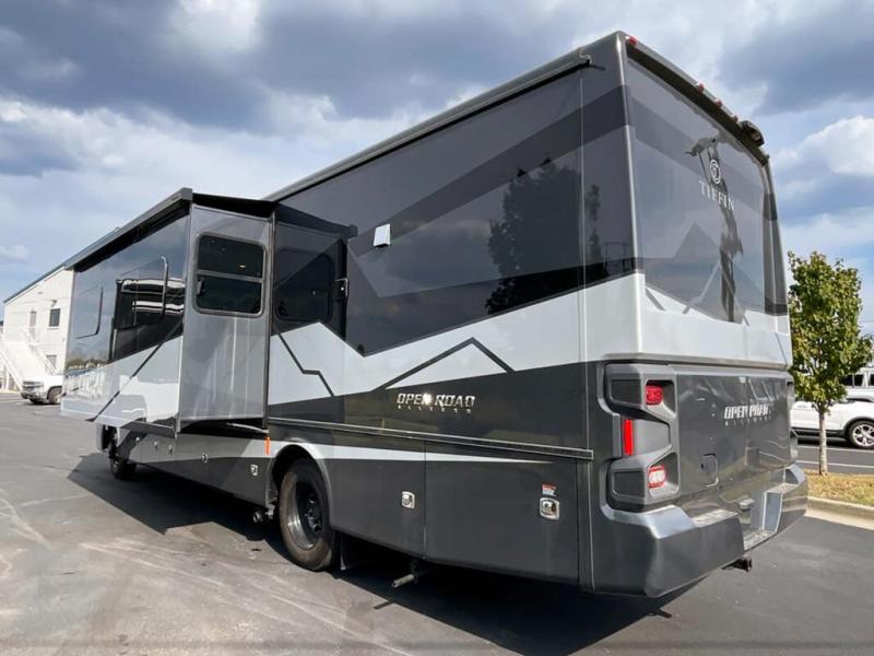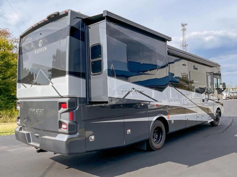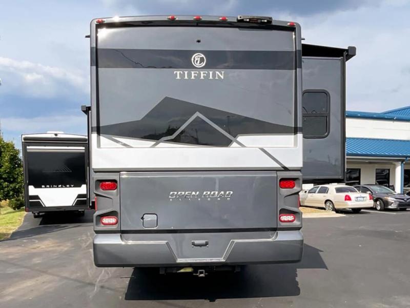 Every one of these Tiffin Motorhomes Open Road Allegro Class A gas motorhomes are ready to go when ever you are! A Ford 7.3L V8 engine powers these units and a durable, yet lightweight, tubular aluminum wall skeleton holds them together. They are beautifully designed with handcrafted cabinetry and a panoramic kitchen galley window for breathtaking views. A couple electronic features you will appreciate include an exterior TV with a soundbar and a Spyder multiplex system, plus there are two 13.5k BUT AC units to keep you cool on those hot summer days. The color back-up camera and side-view cameras will make parking easier than ever, and you'll appreciate hydraulic leveling jacks with a control panel for hassle-free set up. You'll love the new decor options, along with the new Generation 12 exterior color paint options, plus a 10" detachable touchscreen with a media center!