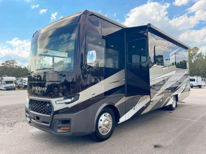Every one of these Tiffin Motorhomes Open Road Allegro Class A gas motorhomes are ready to go when ever you are! A Ford 7.3L V8 engine powers these units and a durable, yet lightweight, tubular aluminum wall skeleton holds them together. They are beautifully designed with handcrafted cabinetry and a panoramic kitchen galley window for breathtaking views. A couple electronic features you will appreciate include an exterior TV with a soundbar and a Spyder multiplex system, plus there are two 13.5k BUT AC units to keep you cool on those hot summer days. The color back-up camera and side-view cameras will make parking easier than ever, and you'll appreciate hydraulic leveling jacks with a control panel for hassle-free set up. New features include an exterior ladder now standard, new Generation 11 paint schemes, optional Starlink prep, and more!