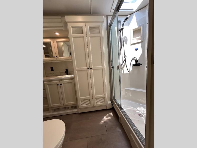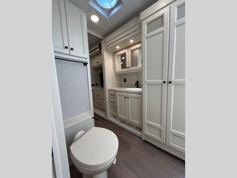 The 34 PA floorplan is one of Tiffin’s most popular for a reason. With four slide-outs, it offers an expansive living area, private rear bedroom, and a dual vanity bathroom that brings residential luxury on the road. The open layout is ideal for entertaining, relaxing, or working remotely from wherever you park.