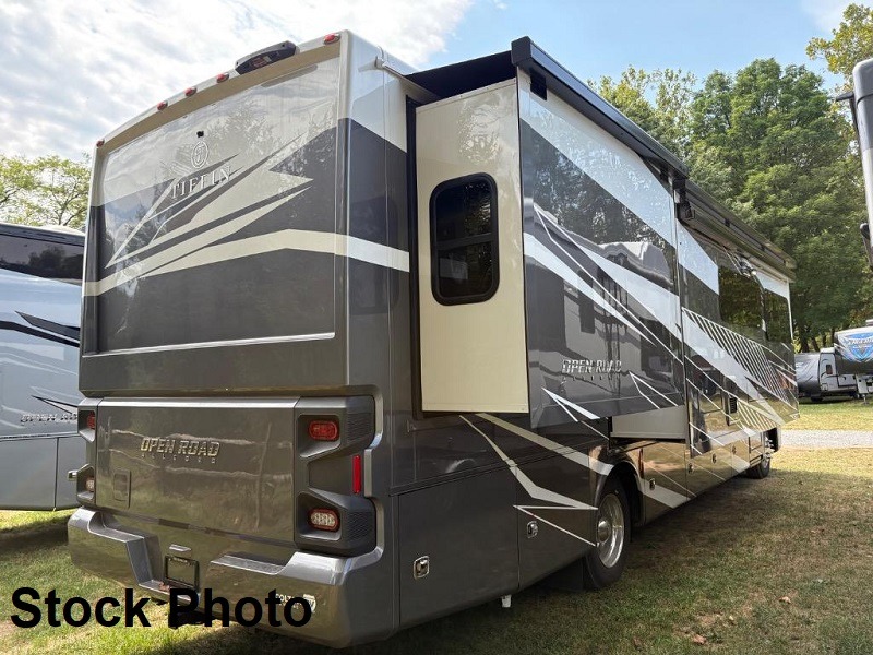Every one of these Tiffin Motorhomes Open Road Allegro Class A gas motorhomes are ready to go when ever you are! A Ford 7.3L V8 engine powers these units and a durable, yet lightweight, tubular aluminum wall skeleton holds them together. They are beautifully designed with handcrafted cabinetry and a panoramic kitchen galley window for breathtaking views. A couple electronic features you will appreciate include an exterior TV with a soundbar and a Spyder multiplex system, plus there are two 13.5k BUT AC units to keep you cool on those hot summer days. The color back-up camera and side-view cameras will make parking easier than ever, and you'll appreciate hydraulic leveling jacks with a control panel for hassle-free set up. You'll love the new decor options, along with the new Generation 12 exterior color paint options, plus a 10" detachable touchscreen with a media center!