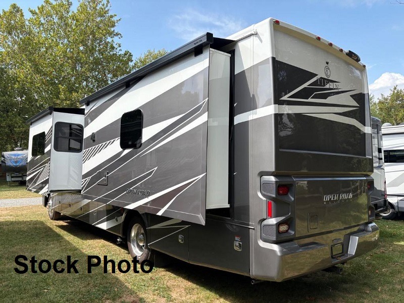 Every one of these Tiffin Motorhomes Open Road Allegro Class A gas motorhomes are ready to go when ever you are! A Ford 7.3L V8 engine powers these units and a durable, yet lightweight, tubular aluminum wall skeleton holds them together. They are beautifully designed with handcrafted cabinetry and a panoramic kitchen galley window for breathtaking views. A couple electronic features you will appreciate include an exterior TV with a soundbar and a Spyder multiplex system, plus there are two 13.5k BUT AC units to keep you cool on those hot summer days. The color back-up camera and side-view cameras will make parking easier than ever, and you'll appreciate hydraulic leveling jacks with a control panel for hassle-free set up. You'll love the new decor options, along with the new Generation 12 exterior color paint options, plus a 10" detachable touchscreen with a media center!