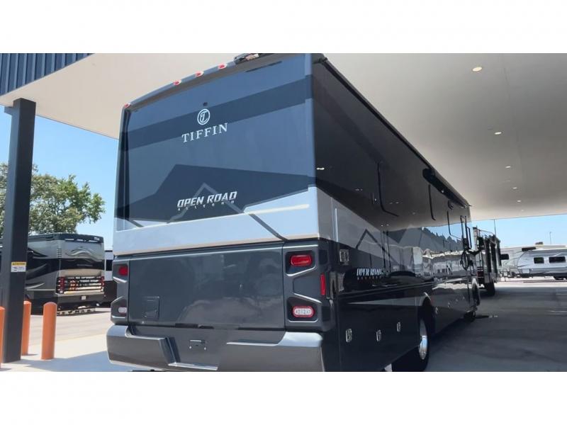 Every one of these Tiffin Motorhomes Open Road Allegro Class A gas motorhomes are ready to go when ever you are! A Ford 7.3L V8 engine powers these units and a durable, yet lightweight, tubular aluminum wall skeleton holds them together. They are beautifully designed with handcrafted cabinetry, Ultrafabrics, and a panoramic kitchen galley window for breathtaking views. A couple electronic features you will appreciate include an exterior TV with a soundbar and a Spyder multiplex system, plus there are two 13.5k BUT AC units to keep you cool on those hot summer days. The color back-up camera and side-view cameras will make parking easier than ever, and you'll appreciate hydraulic leveling jacks with a control panel for hassle-free set up. With a luxurious design, innovative technologies, and thoughtful amenities, what more could you want?!