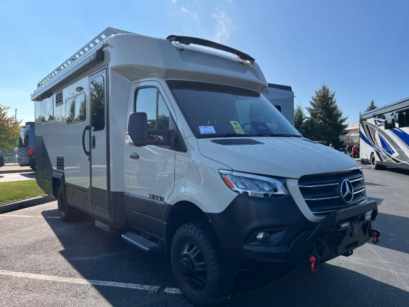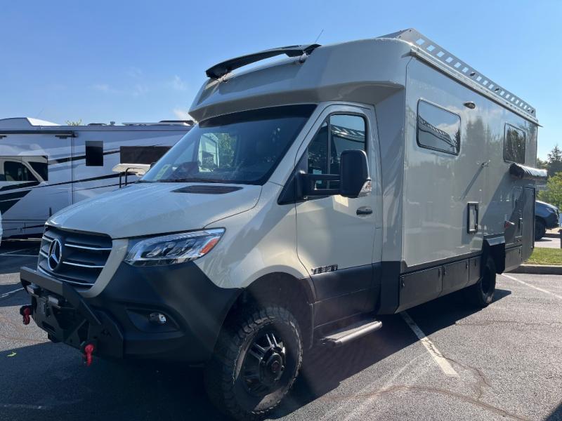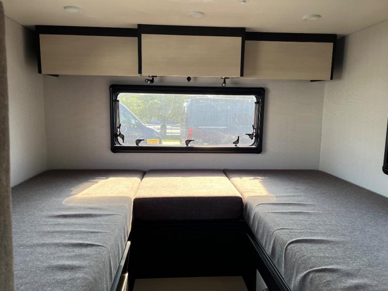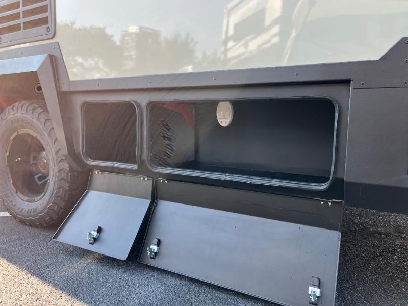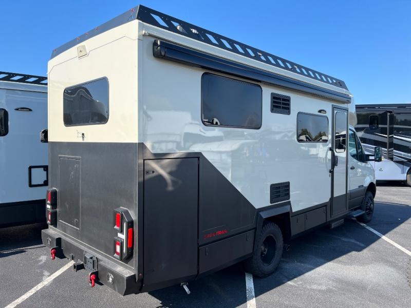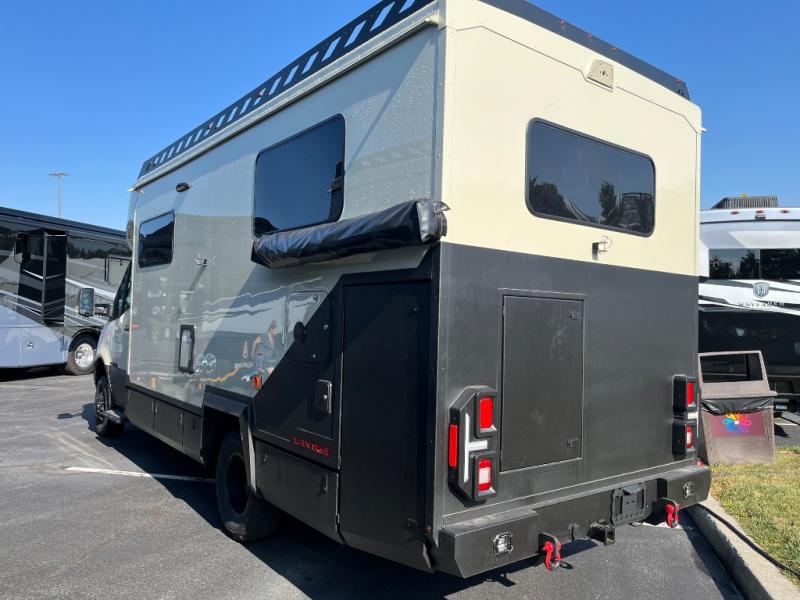 The Open Trail by Tiffin Motorhomes will do just that; take you on the open trails! This Class C diesel coach sits on the durable Mercedes-Benz 3500XD AWD dual wheel cutaway chassis, allowing you to venture off-road when the adventure calls for it. You will also appreciate the added safety features, such as active brake assist, Active Distance Assist Distronic (adaptive cruise control), active lane keeping assist and more! The 3.2 kW RVMP diesel generator and 270 AH Battleborn lithium battery pack will keep you powered up, and you can choose the optional Lithionics battery system and optional (2) 200W solar panels to keep you off-grid for even longer periods of time. An Aqua View Showermiser system and hydronic hot water heater provide added comfort when it's time to clean up, and the black powder coated aluminum cabinetry throughout is ultra durable to withstand your adventrous lifestyle. Outside, you'll find riveted all-aluminum body molding, full-body paint with two layers of clear coat, a heavy duty off-road front bumper, and high performance Diamond shield protective film for added durability.