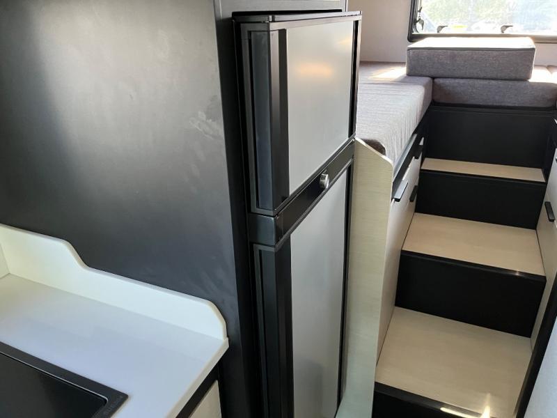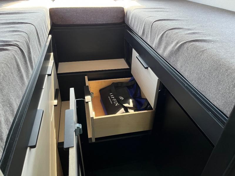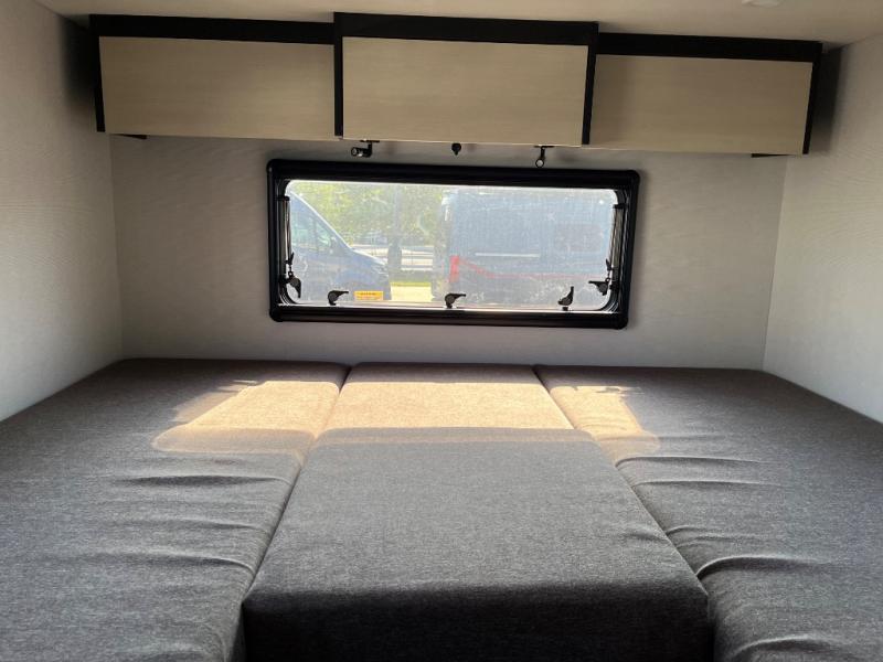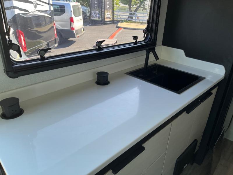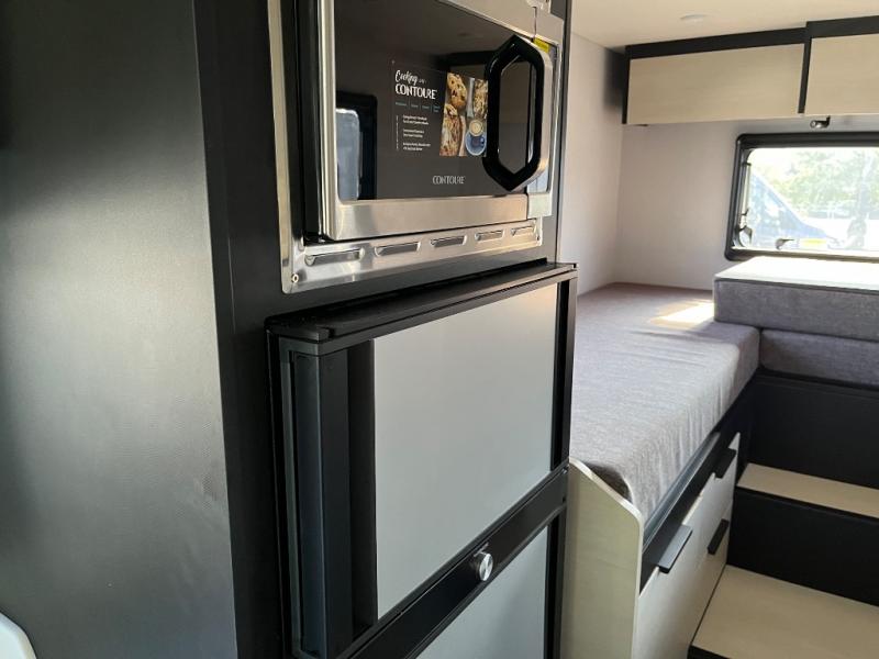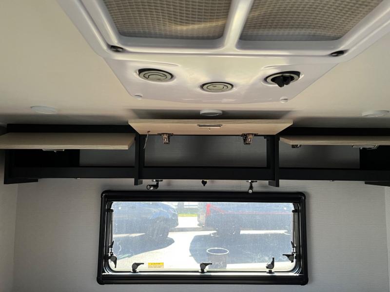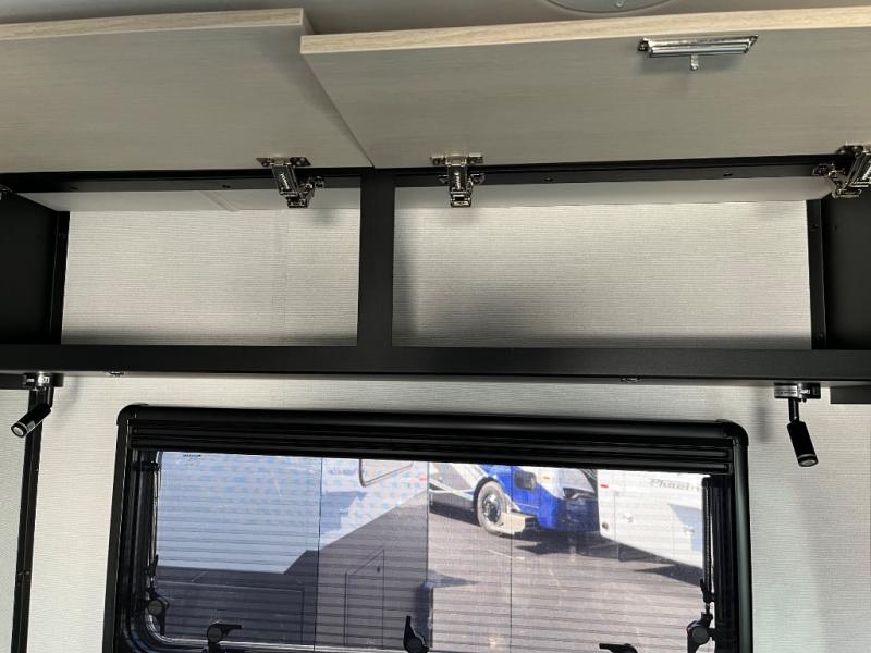 If you're an outdoor enthusiast who doesn't want to sacrifice comfort, this coach is for you! The premium Mercedes captain's seats include heat for added comfort plus they can swivel around to become part of the living area seating. You can make lunch on the single burner portable induction stove or in the stainless steel microwave/air fryer. There is a sleeper sofa for cozy seating and additional sleeping space for a guest, or you can choose the optional L-shaped lounge if you're wanting a table. The full residential-style wet bath includes a roof vent fan, towel and toilet paper holders, an oversized mirror, plus a large black aluminum under-sink cabinet with a GFCI outlet to plug in any accessories you may need. Head to the rear of this coach to find the 32" x 76" twin beds with a nightstand in between, or you can convert them into one king-size bed. There is also an overhead cabinet and dual pull-out closets so you both have a place for your things!