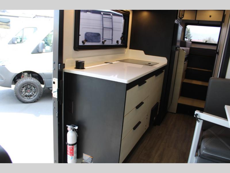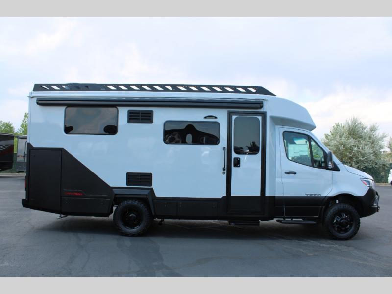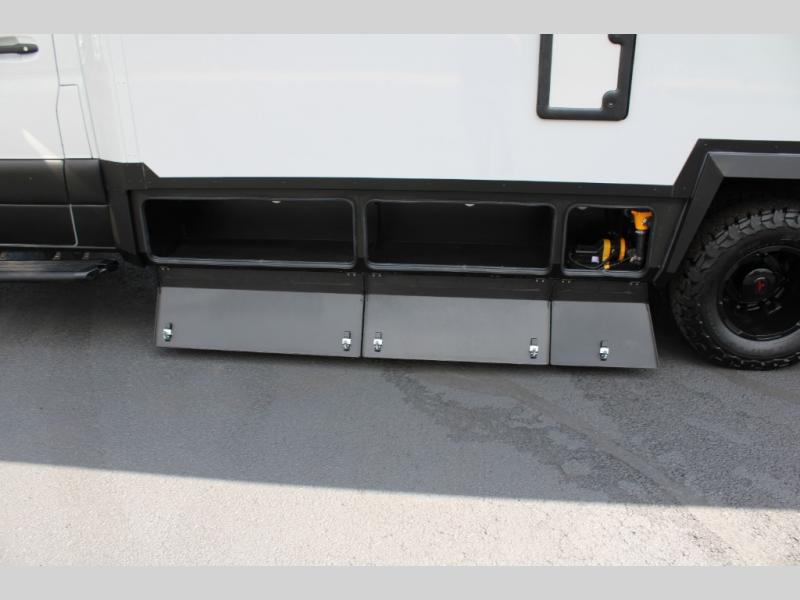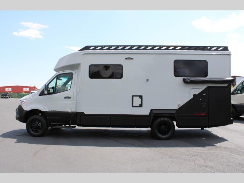 The Open Trail by Tiffin Motorhomes will do just that; take you on the open trails! This Class C diesel coach sits on the durable Mercedes-Benz 3500XD AWD dual wheel cutaway chassis, allowing you to venture off-road when the adventure calls for it. You will also appreciate the added safety features, such as active brake assist, Active Distance Assist Distronic (adaptive cruise control), active lane keeping assist and more! The 3.2 kW RVMP diesel generator and 270 AH Battleborn lithium battery pack will keep you powered up, and you can choose the optional Lithionics battery system and optional (2) 200W solar panels to keep you off-grid for even longer periods of time. An Aqua View Showermiser system and hydronic hot water heater provide added comfort when it's time to clean up, and the black powder coated aluminum cabinetry throughout is ultra durable to withstand your adventrous lifestyle. Outside, you'll find riveted all-aluminum body molding, full-body paint with two layers of clear coat, a heavy duty off-road front bumper, and high performance Diamond shield protective film for added durability.