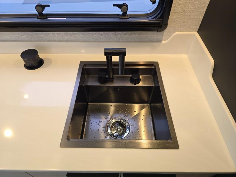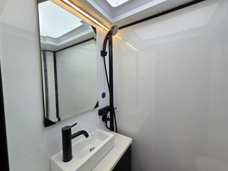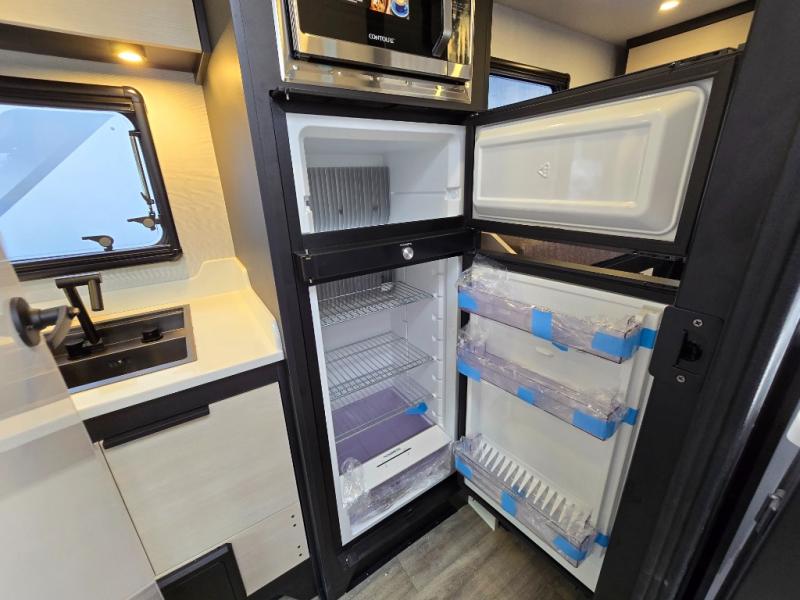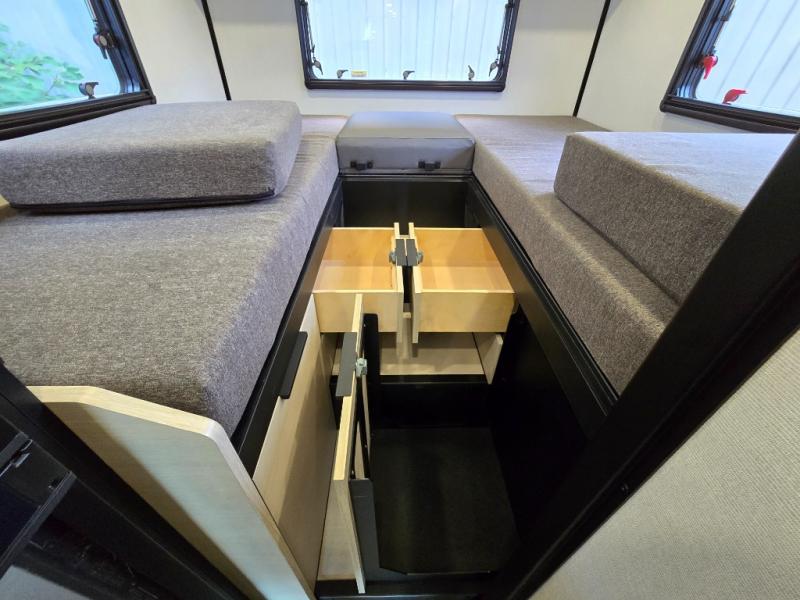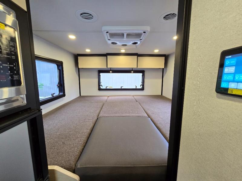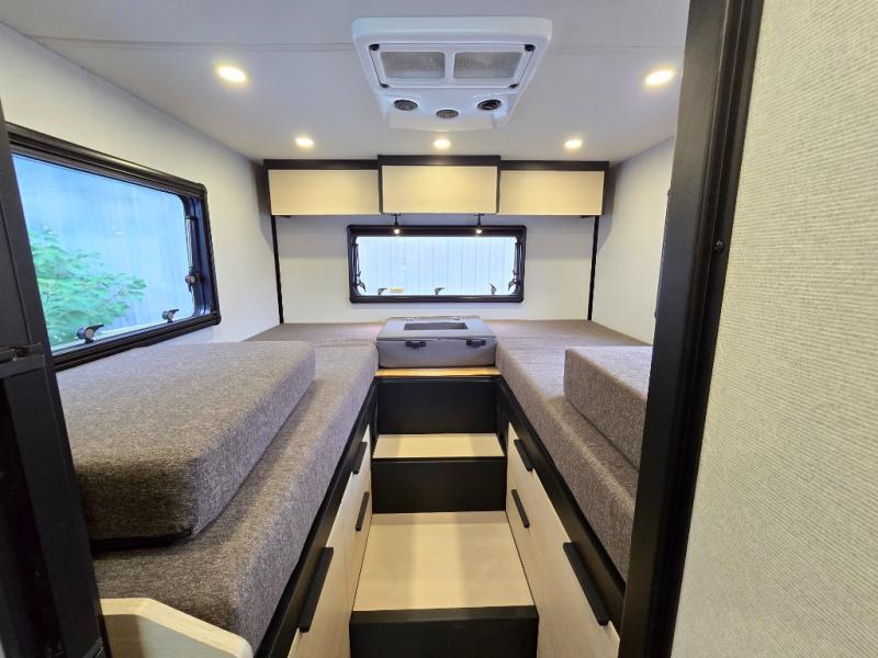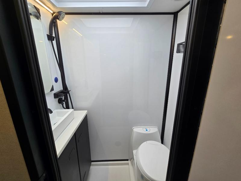 If you're an outdoor enthusiast who doesn't want to sacrifice comfort, this coach is for you! The premium Mercedes captain's seats include heat for added comfort plus they can swivel around to become part of the living area seating. You can make lunch on the single burner portable induction stove or in the stainless steel microwave/air fryer. There is a sleeper sofa for cozy seating and additional sleeping space for a guest, or you can choose the optional L-shaped lounge if you're wanting a table. The full residential-style wet bath includes a roof vent fan, towel and toilet paper holders, an oversized mirror, plus a large black aluminum under-sink cabinet with a GFCI outlet to plug in any accessories you may need. Head to the rear of this coach to find the 32" x 76" twin beds with a nightstand in between, or you can convert them into one king-size bed. There is also an overhead cabinet and dual pull-out closets so you both have a place for your things!