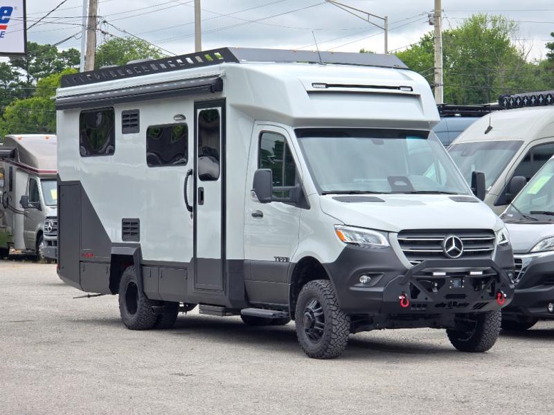 The Open Trail by Tiffin Motorhomes will do just that; take you on the open trails! This Class C diesel coach sits on the durable Mercedes-Benz 3500XD AWD dual wheel cutaway chassis, allowing you to venture off-road when the adventure calls for it. You will also appreciate the added safety features, such as active brake assist, Active Distance Assist Distronic (adaptive cruise control), active lane keeping assist and more! The 3.2 kW RVMP diesel generator and 270 AH Battleborn lithium battery pack will keep you powered up, and you can choose the optional Lithionics battery system and optional (2) 200W solar panels to keep you off-grid for even longer periods of time. An Aqua View Showermiser system and hydronic hot water heater provide added comfort when it's time to clean up, and the black powder coated aluminum cabinetry throughout is ultra durable to withstand your adventrous lifestyle. Outside, you'll find riveted all-aluminum body molding, full-body paint with two layers of clear coat, a heavy duty off-road front bumper, and high performance Diamond shield protective film for added durability.