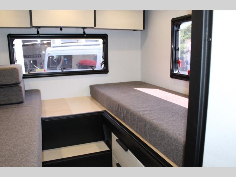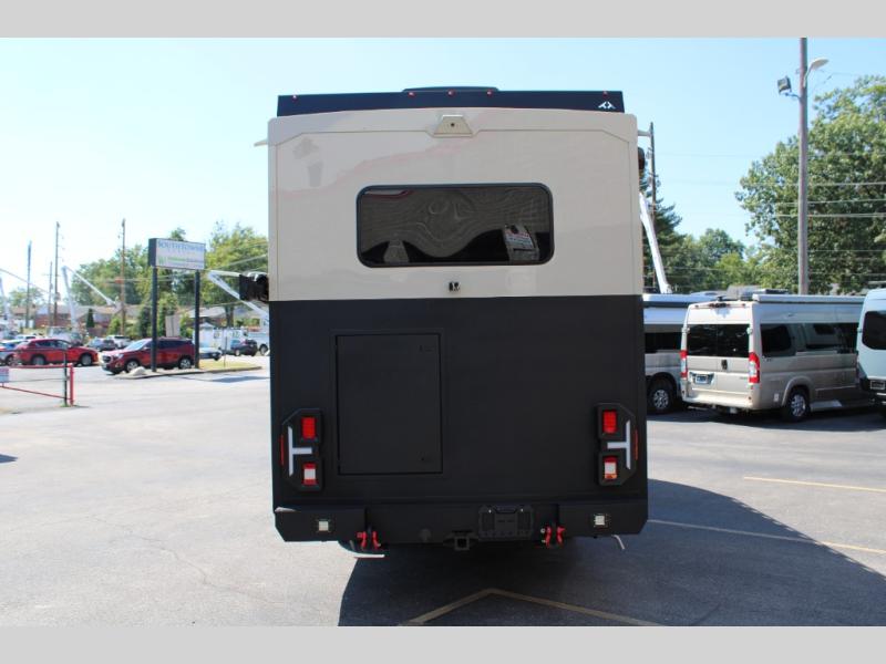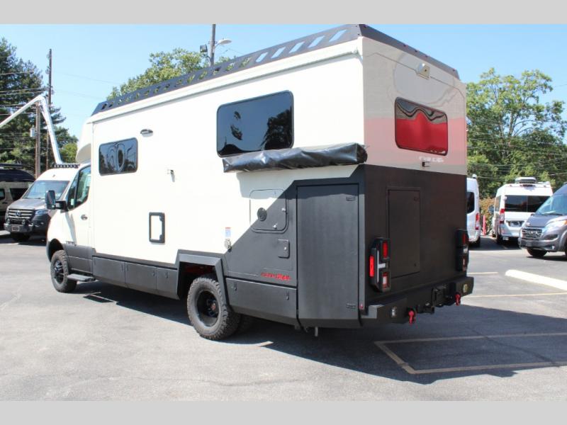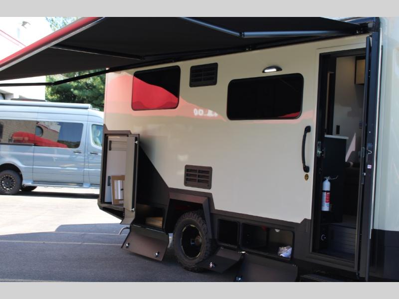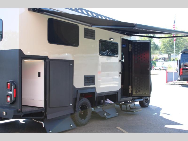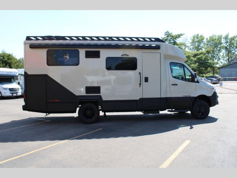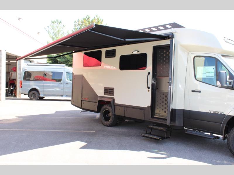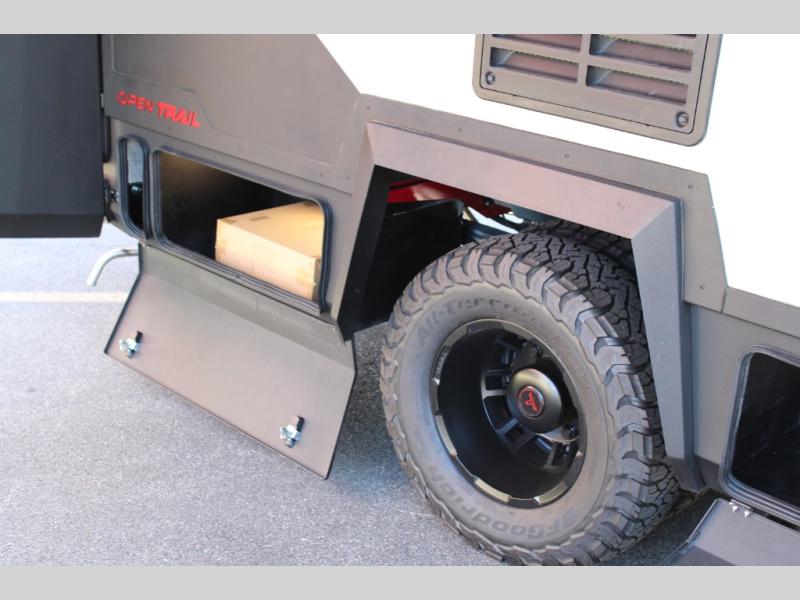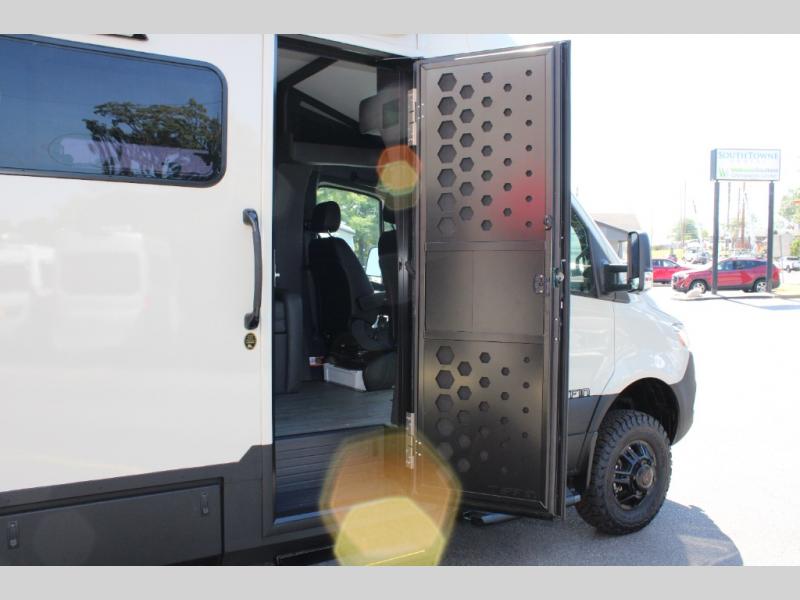 The Open Trail by Tiffin Motorhomes will do just that; take you on the open trails! This Class C diesel coach sits on the durable Mercedes-Benz 3500XD AWD dual wheel cutaway chassis, allowing you to venture off-road when the adventure calls for it. You will also appreciate the added safety features, such as active brake assist, Active Distance Assist Distronic (adaptive cruise control), active lane keeping assist and more! The 3.2 kW RVMP diesel generator and 270 AH Battleborn lithium battery pack will keep you powered up, and you can choose the optional Lithionics battery system and optional (2) 200W solar panels to keep you off-grid for even longer periods of time. An Aqua View Showermiser system and hydronic hot water heater provide added comfort when it's time to clean up, and the black powder coated aluminum cabinetry throughout is ultra durable to withstand your adventrous lifestyle. Outside, you'll find riveted all-aluminum body molding, full-body paint with two layers of clear coat, a heavy duty off-road front bumper, and high performance Diamond shield protective film for added durability.