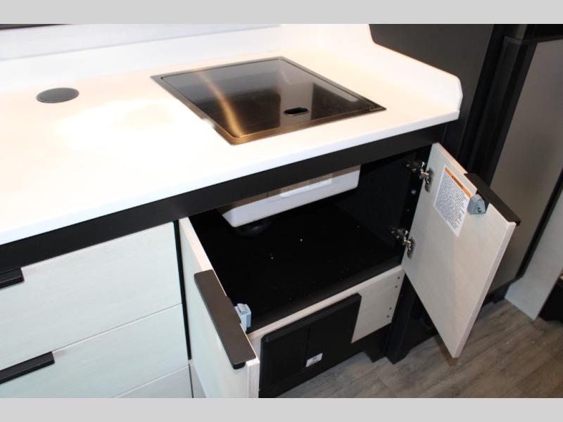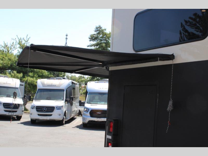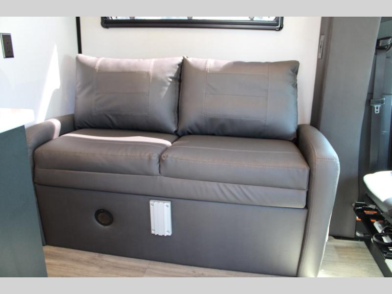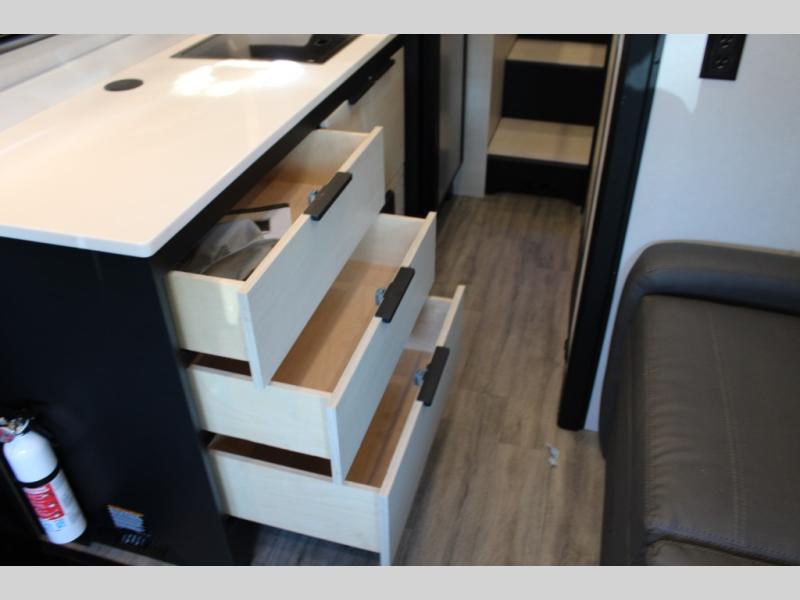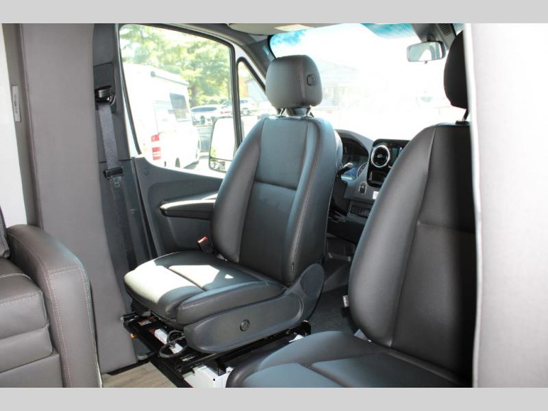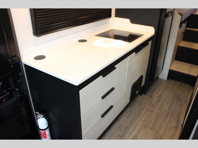 If you're an outdoor enthusiast who doesn't want to sacrifice comfort, this coach is for you! The premium Mercedes captain's seats include heat for added comfort plus they can swivel around to become part of the living area seating. You can make lunch on the single burner portable induction stove or in the stainless steel microwave/air fryer. There is a sleeper sofa for cozy seating and additional sleeping space for a guest, or you can choose the optional L-shaped lounge if you're wanting a table. The full residential-style wet bath includes a roof vent fan, towel and toilet paper holders, an oversized mirror, plus a large black aluminum under-sink cabinet with a GFCI outlet to plug in any accessories you may need. Head to the rear of this coach to find the 32" x 76" twin beds with a nightstand in between, or you can convert them into one king-size bed. There is also an overhead cabinet and dual pull-out closets so you both have a place for your things!