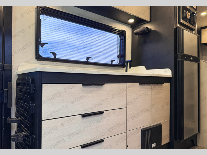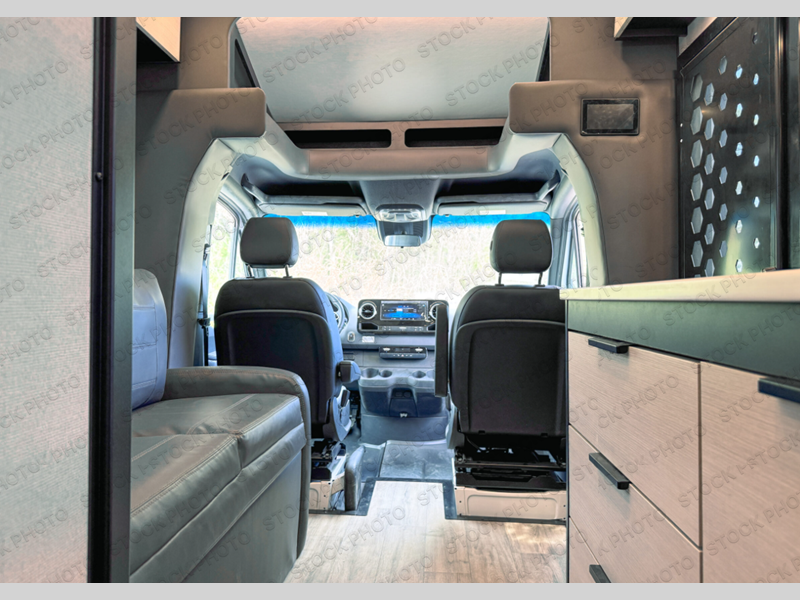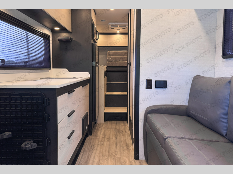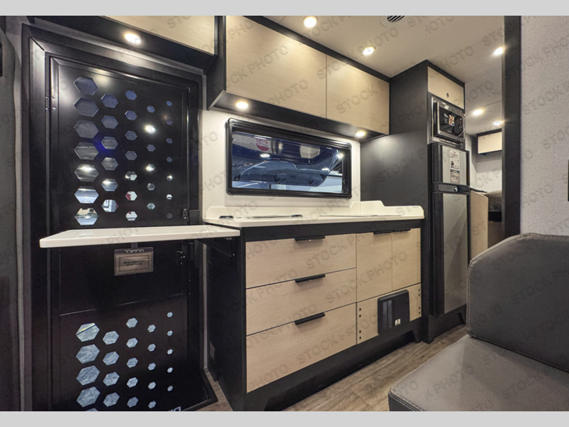 If you're an outdoor enthusiast who doesn't want to sacrifice comfort, this coach is for you! The premium Mercedes captain's seats include heat for added comfort plus they can swivel around to become part of the living area seating. You can make lunch on the single burner portable induction stove or in the stainless steel microwave/air fryer. There is a sleeper sofa for cozy seating and additional sleeping space for a guest, or you can choose the optional L-shaped lounge if you're wanting a table. The full residential-style wet bath includes a roof vent fan, towel and toilet paper holders, an oversized mirror, plus a large black aluminum under-sink cabinet with a GFCI outlet to plug in any accessories you may need. Head to the rear of this coach to find the 32" x 76" twin beds with a nightstand in between, or you can convert them into one king-size bed. There is also an overhead cabinet and dual pull-out closets so you both have a place for your things!