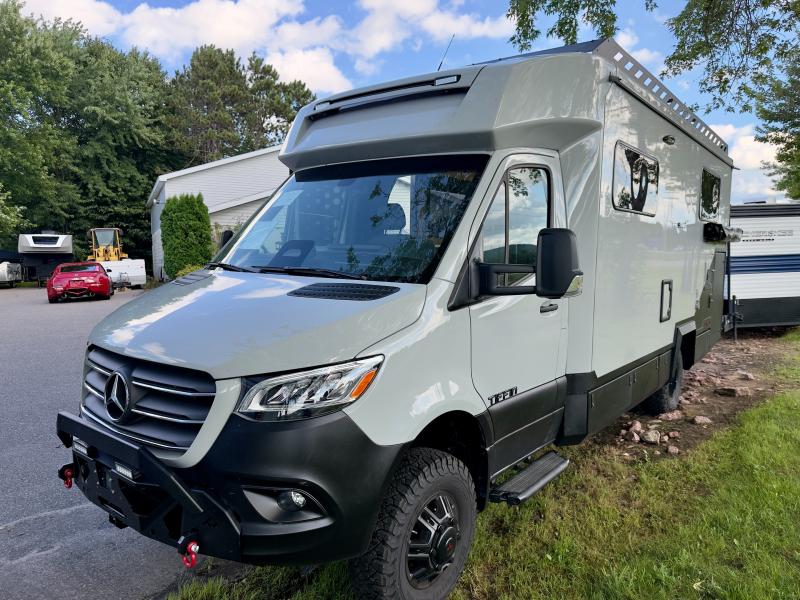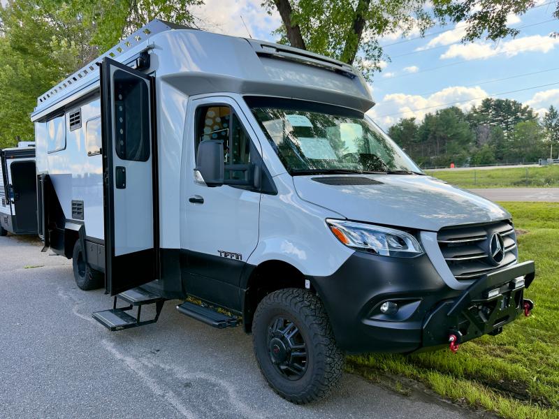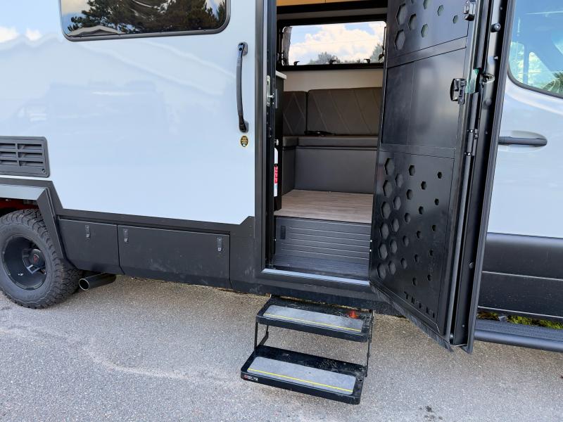 The Open Trail by Tiffin Motorhomes will do just that; take you on the open trails! This Class C diesel coach sits on the durable Mercedes-Benz 3500XD AWD dual wheel cutaway chassis, allowing you to venture off-road when the adventure calls for it. You will also appreciate the added safety features, such as active brake assist, Active Distance Assist Distronic (adaptive cruise control), active lane keeping assist and more! The 3.2 kW RVMP diesel generator and 270 AH Battleborn lithium battery pack will keep you powered up, and you can choose the optional Lithionics battery system and optional (2) 200W solar panels to keep you off-grid for even longer periods of time. An Aqua View Showermiser system and hydronic hot water heater provide added comfort when it's time to clean up, and the black powder coated aluminum cabinetry throughout is ultra durable to withstand your adventrous lifestyle. Outside, you'll find riveted all-aluminum body molding, full-body paint with two layers of clear coat, a heavy duty off-road front bumper, and high performance Diamond shield protective film for added durability.