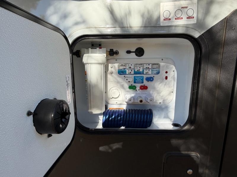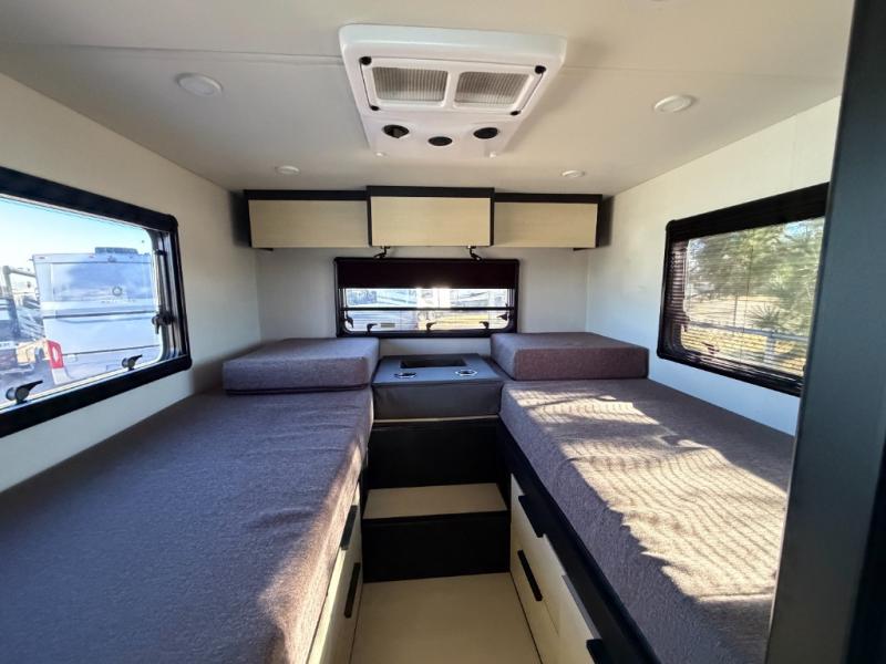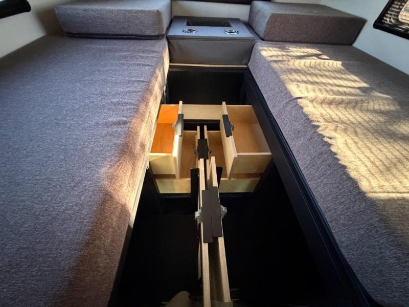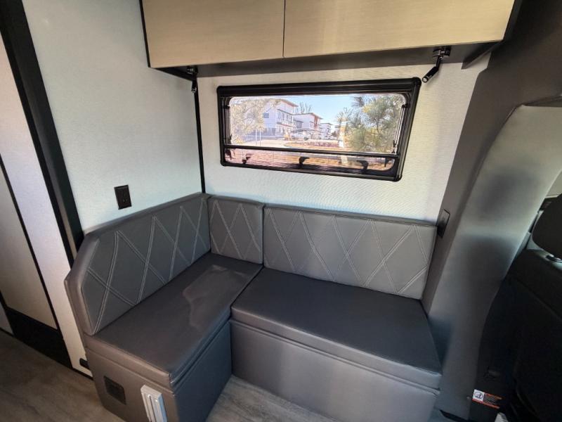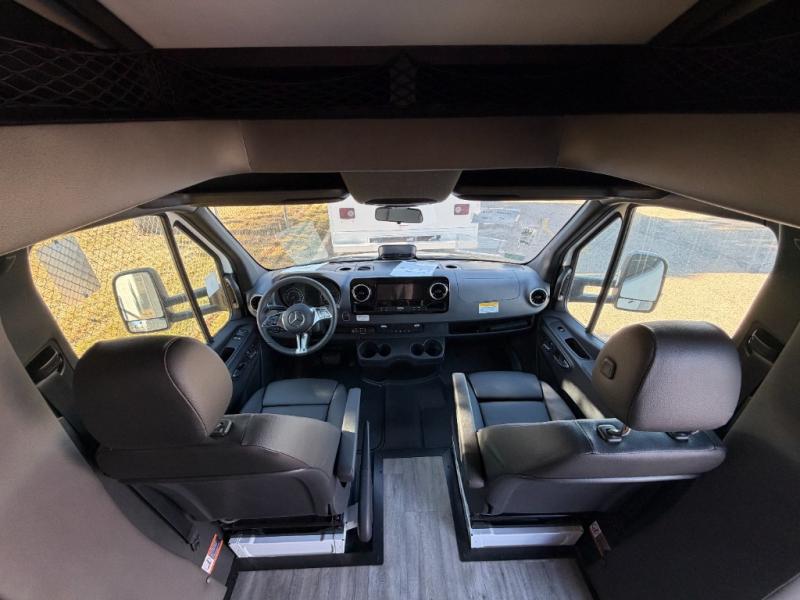 If you're an outdoor enthusiast who doesn't want to sacrifice comfort, this coach is for you! The premium Mercedes captain's seats include heat for added comfort plus they can swivel around to become part of the living area seating. You can make lunch on the single burner portable induction stove or in the stainless steel microwave/air fryer. There is a sleeper sofa for cozy seating and additional sleeping space for a guest, or you can choose the optional L-shaped lounge if you're wanting a table. The full residential-style wet bath includes a roof vent fan, towel and toilet paper holders, an oversized mirror, plus a large black aluminum under-sink cabinet with a GFCI outlet to plug in any accessories you may need. Head to the rear of this coach to find the 32" x 76" twin beds with a nightstand in between, or you can convert them into one king-size bed. There is also an overhead cabinet and dual pull-out closets so you both have a place for your things!