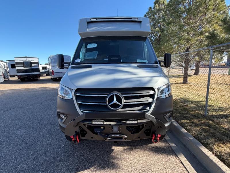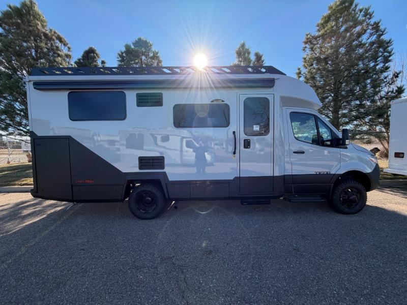 The Open Trail by Tiffin Motorhomes will do just that; take you on the open trails! This Class C diesel coach sits on the durable Mercedes-Benz 3500XD AWD dual wheel cutaway chassis, allowing you to venture off-road when the adventure calls for it. You will also appreciate the added safety features, such as active brake assist, Active Distance Assist Distronic (adaptive cruise control), active lane keeping assist and more! The 3.2 kW RVMP diesel generator and 270 AH Battleborn lithium battery pack will keep you powered up, and you can choose the optional Lithionics battery system and optional (2) 200W solar panels to keep you off-grid for even longer periods of time. An Aqua View Showermiser system and hydronic hot water heater provide added comfort when it's time to clean up, and the black powder coated aluminum cabinetry throughout is ultra durable to withstand your adventrous lifestyle. Outside, you'll find riveted all-aluminum body molding, full-body paint with two layers of clear coat, a heavy duty off-road front bumper, and high performance Diamond shield protective film for added durability.
