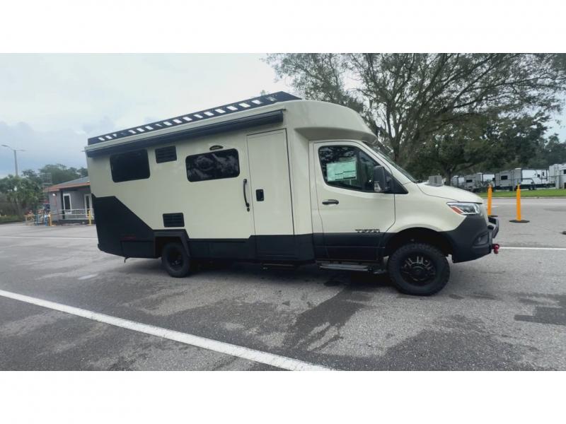 The Open Trail by Tiffin Motorhomes will do just that; take you on the open trails! This Class C diesel coach sits on the durable Mercedes-Benz 3500XD AWD dual wheel cutaway chassis, allowing you to venture off-road when the adventure calls for it. You will also appreciate the added safety features, such as active brake assist, Active Distance Assist Distronic (adaptive cruise control), active lane keeping assist and more! The 3.2 kW RVMP diesel generator and 270 AH Battleborn lithium battery pack will keep you powered up, and you can choose the optional Lithionics battery system and optional (2) 200W solar panels to keep you off-grid for even longer periods of time. An Aqua View Showermiser system and hydronic hot water heater provide added comfort when it's time to clean up, and the black powder coated aluminum cabinetry throughout is ultra durable to withstand your adventrous lifestyle. Outside, you'll find riveted all-aluminum body molding, full-body paint with two layers of clear coat, a heavy duty off-road front bumper, and high performance Diamond shield protective film for added durability.