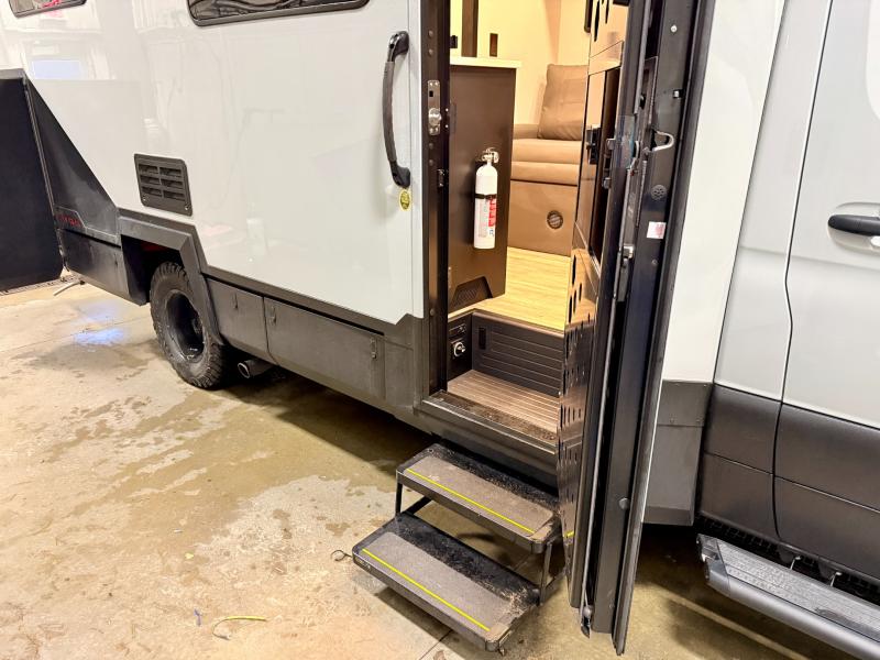 The Open Trail by Tiffin Motorhomes will do just that; take you on the open trails! This Class C diesel coach sits on the durable Mercedes-Benz 3500XD AWD dual wheel cutaway chassis, allowing you to venture off-road when the adventure calls for it. You will also appreciate the added safety features, such as active brake assist, Active Distance Assist Distronic (adaptive cruise control), active lane keeping assist and more! The 3.2 kW RVMP diesel generator and 270 AH Battleborn lithium battery pack will keep you powered up, and you can choose the optional Lithionics battery system and optional (2) 200W solar panels to keep you off-grid for even longer periods of time. An Aqua View Showermiser system and hydronic hot water heater provide added comfort when it's time to clean up, and the black powder coated aluminum cabinetry throughout is ultra durable to withstand your adventrous lifestyle. Outside, you'll find riveted all-aluminum body molding, full-body paint with two layers of clear coat, a heavy duty off-road front bumper, and high performance Diamond shield protective film for added durability.