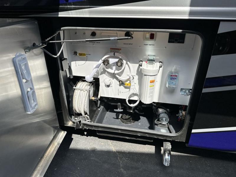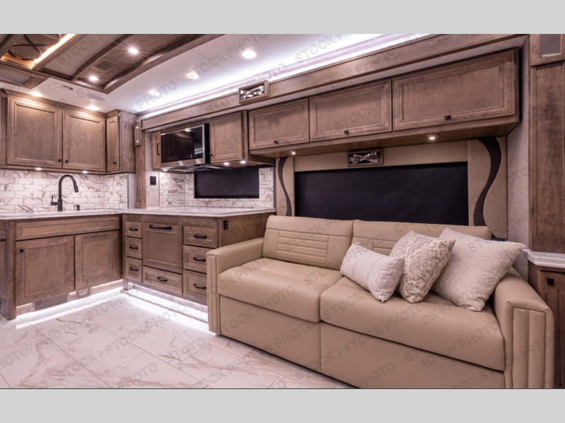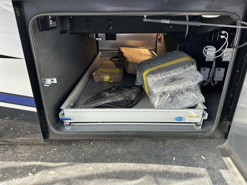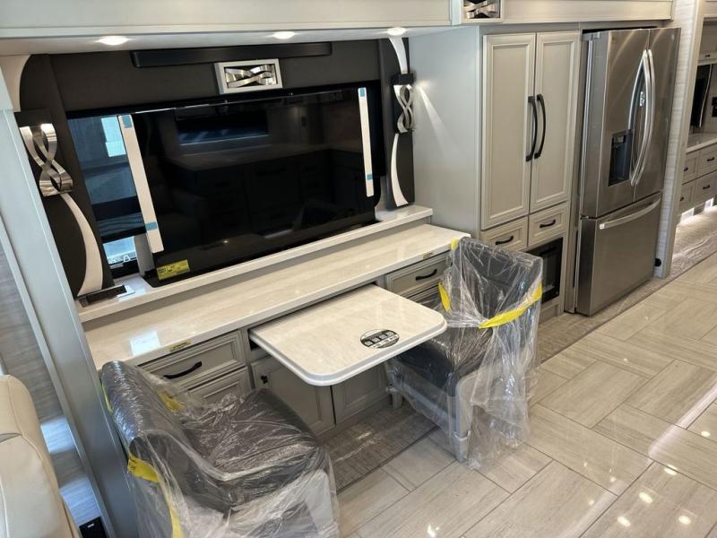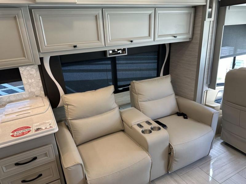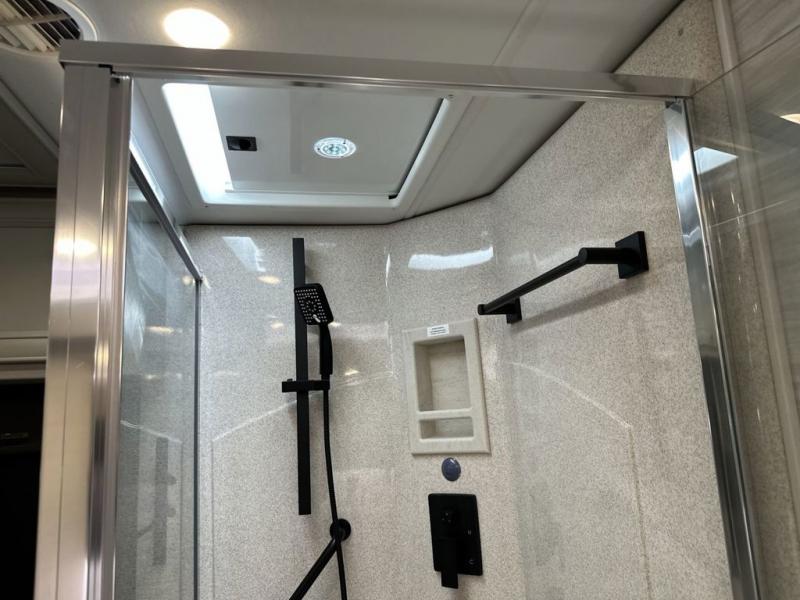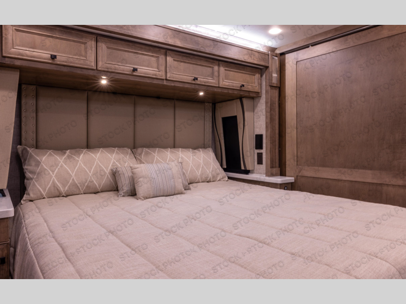 Travel the country with this comfortable motorhome! The full rear bathroom will have you feeling right at home with the dual sink vanity that has a tri-view mirror, a shower with a seat, and a closet with has an area prepped to add an optional stacked washer and dryer. Get a good night's rest on the 72" x 80" king bed slide with nightstands on either side across from stacked drawers and a mounted bedroom TV. You will have everything you need to prepare delicious home cooked meals including a smart convection microwave with an air fryer, storage drawers for ingredients, and you can even add an optional drawer-type dishwasher to make clean up easier. The air coil sofa bed offers another comfortable sleeping space for a guest or two, plus you can add an optional drop-down front bunk for even more sleeping space. This model also includes a dinette with chairs and an optional fireplace if you want to make your space even more cozy!