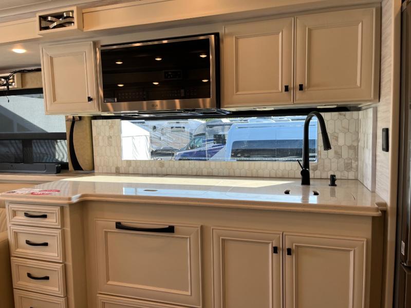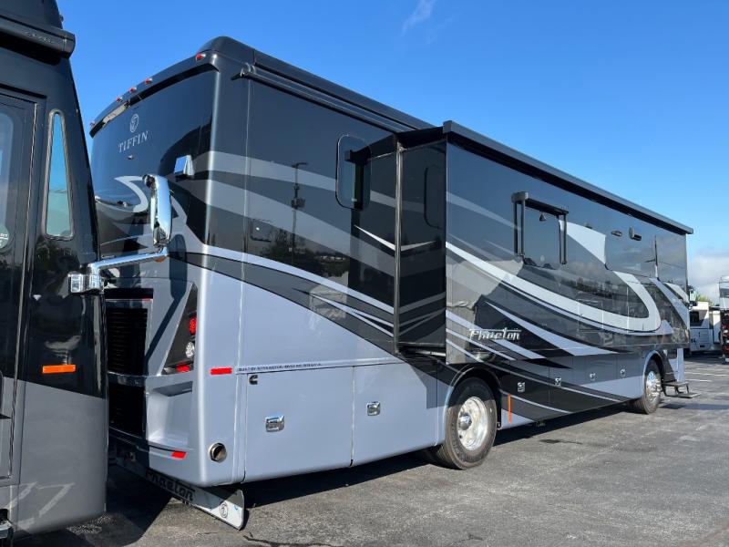 Each one of these Tiffin Motorhomes Phaeton Class A diesel motorhomes offer high-end elegance at every turn! A PowerGlide XC raised rail rear engine diesel chassis will give you a smooth ride for every mile, and each coach comes with a Cummins L9 450 HP engine to power your journeys. There is a 10.0 kW Onan Quiet Diesel generator, three 15k BTU A/C units, and a Firefly integrations Mira module to keep you connected wherever you go. Outside, you'll appreciate the custom rock guard to protect your unit, along with full-body paint with four layers of clear coat and high-performance protection film on the front cap and select areas. A Girard power awning with LED lights also comes standard plus a fiberglass reinforced plastic basement floor, an exterior TV, and more. If you're traveling with pets, the optional Pet Perks Package can be added that includes a pet dish holder and a leash holder at the entrance door for added convenience!