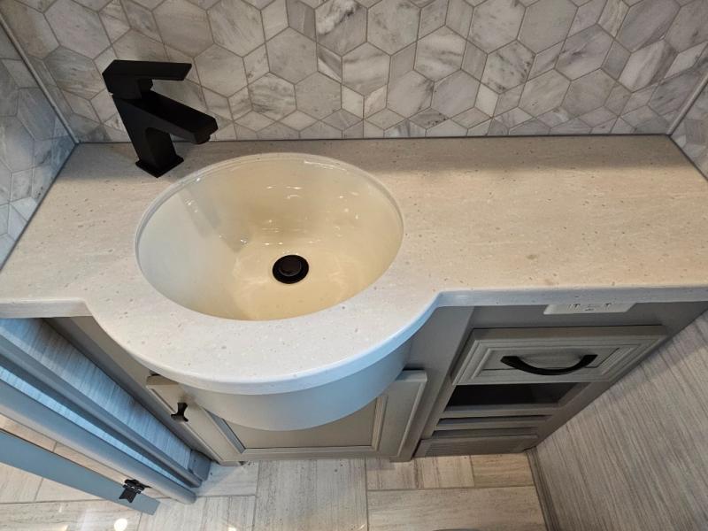 Mid-ship half bath for added convenience
