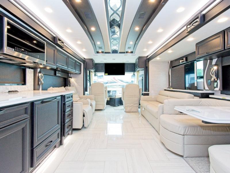 The Phaeton 40 IH is powered by a Cummins L9 450 HP engine on a PowerGlide XC raised rail chassis, delivering a smooth and powerful ride. Key performance and comfort features include: