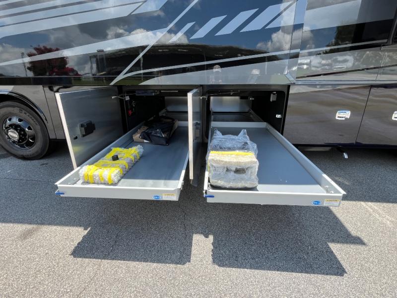 Each one of these Tiffin Motorhomes Phaeton Class A diesel motorhomes offer high-end elegance at every turn! A PowerGlide XC raised rail rear engine diesel chassis will give you a smooth ride for every mile, and each coach comes with a Cummins L9 450 HP engine to power your journeys. There is a 10.0 kW Onan Quiet Diesel generator, three 15k BTU A/C units, and a Firefly integrations Mira module to keep you connected wherever you go. Outside, you'll appreciate the custom rock guard to protect your unit, along with full-body paint with four layers of clear coat and high-performance protection film on the front cap and select areas. A Girard power awning with LED lights also comes standard plus a fiberglass reinforced plastic basement floor, an exterior TV, and more. If you're traveling with pets, the optional Pet Perks Package can be added that includes a pet dish holder and a leash holder at the entrance door for added convenience!