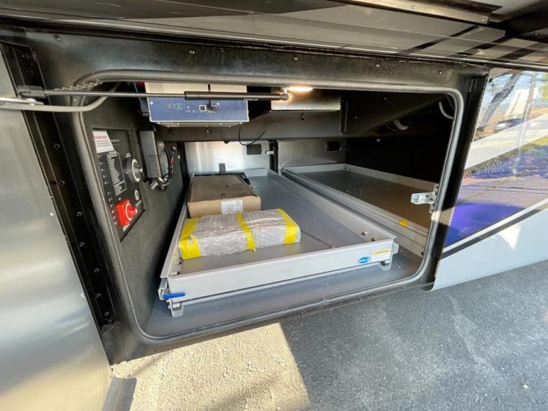 Each one of these Tiffin Motorhomes Phaeton Class A diesel motorhomes offer high-end elegance at every turn! A PowerGlide XC raised rail rear engine diesel chassis will give you a smooth ride for every mile, and each coach comes with a Cummins L9 450 HP engine to power your journeys. There is a 10.0 kW Onan Quiet Diesel generator, three 15k BTU A/C units, and a Firefly integrations Mira module to keep you connected wherever you go. Outside, you'll appreciate the custom rock guard to protect your unit, along with full-body paint with four layers of clear coat and high-performance protection film on the front cap and select areas. A Girard power awning with LED lights also comes standard plus a fiberglass reinforced plastic basement floor, an exterior TV, and more. If you're traveling with pets, the optional Pet Perks Package can be added that includes a pet dish holder and a leash holder at the entrance door for added convenience!