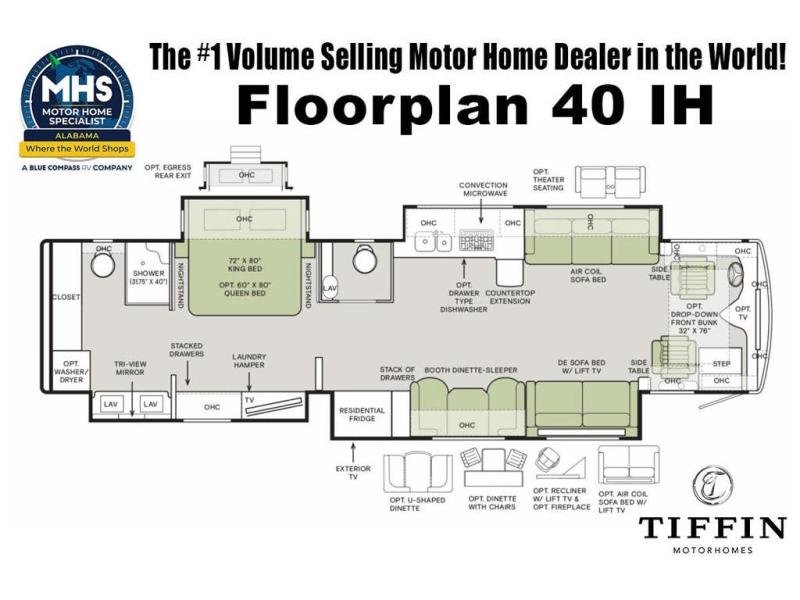 Tiffin Motorhomes Phaeton Class A diesel motorhome 40 IH highlights: