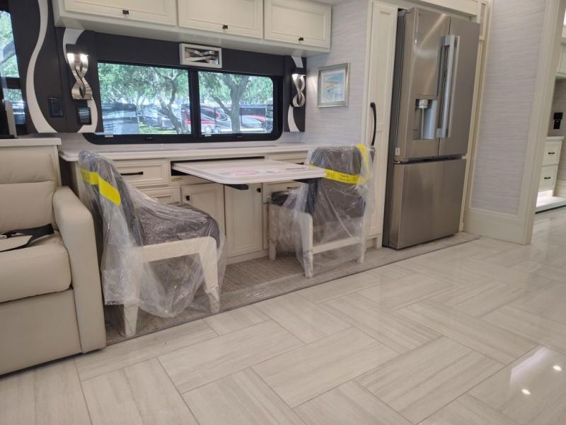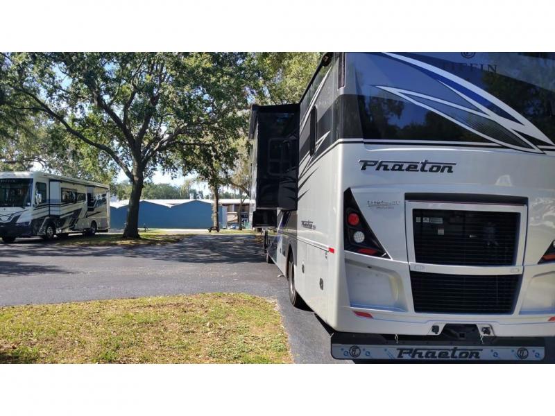 Each one of these Tiffin Motorhomes Phaeton Class A diesel motorhomes offer high-end elegance at every turn! A PowerGlide XC raised rail rear engine diesel chassis will give you a smooth ride for every mile, and each coach comes with a Cummins L9 450 HP engine to power your journeys. There is a 10.0 kW Onan Quiet Diesel generator, three 15k BTU A/C units, and a Firefly integrations Mira module to keep you connected wherever you go. Outside, you'll appreciate the custom rock guard to protect your unit, along with full-body paint with four layers of clear coat and high-performance protection film on the front cap and select areas. A Girard power awning with LED lights also comes standard plus a fiberglass reinforced plastic basement floor, an exterior TV, and more. If you're traveling with pets, the optional Pet Perks Package can be added that includes a pet dish holder and a leash holder at the entrance door for added convenience!