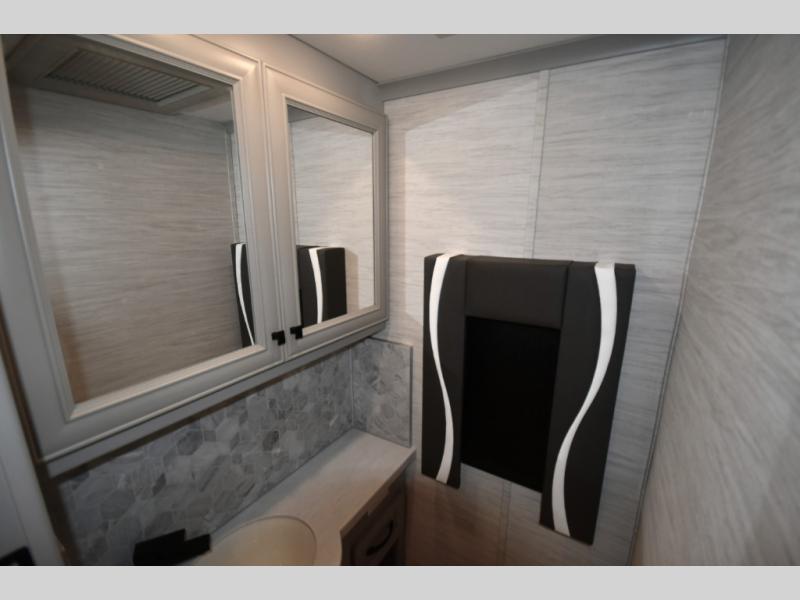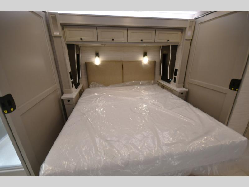 At the rear, the luxurious master suite offers a king bed, ample wardrobe space, and refined cabinetry. The spa-inspired bathroom includes a spacious shower, premium fixtures, and thoughtful design that brings residential comfort to the road.