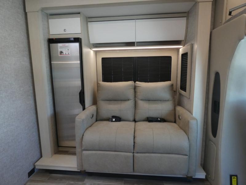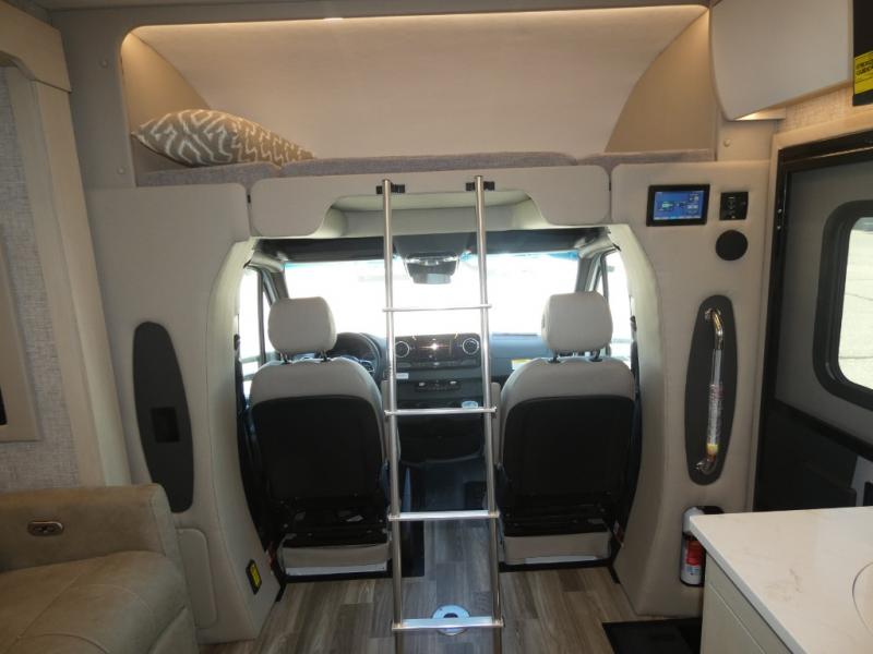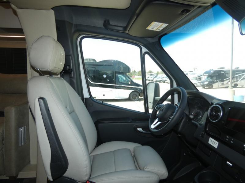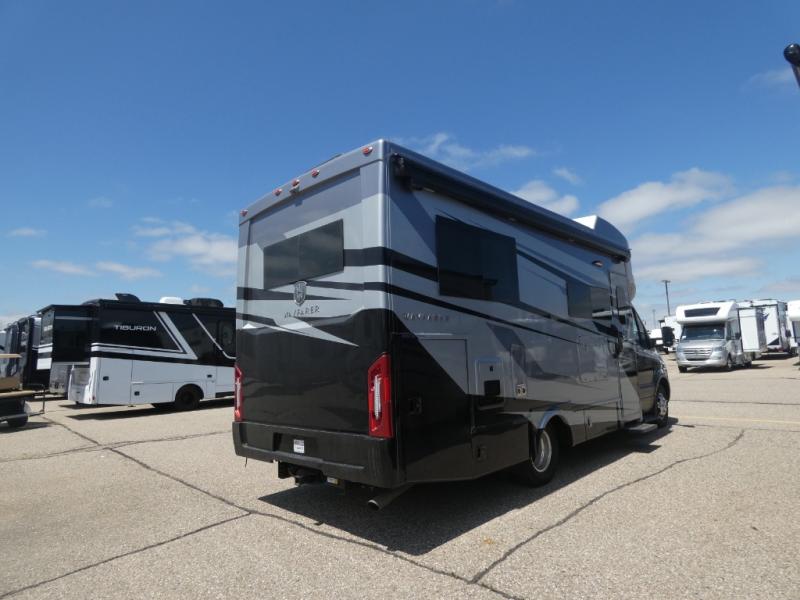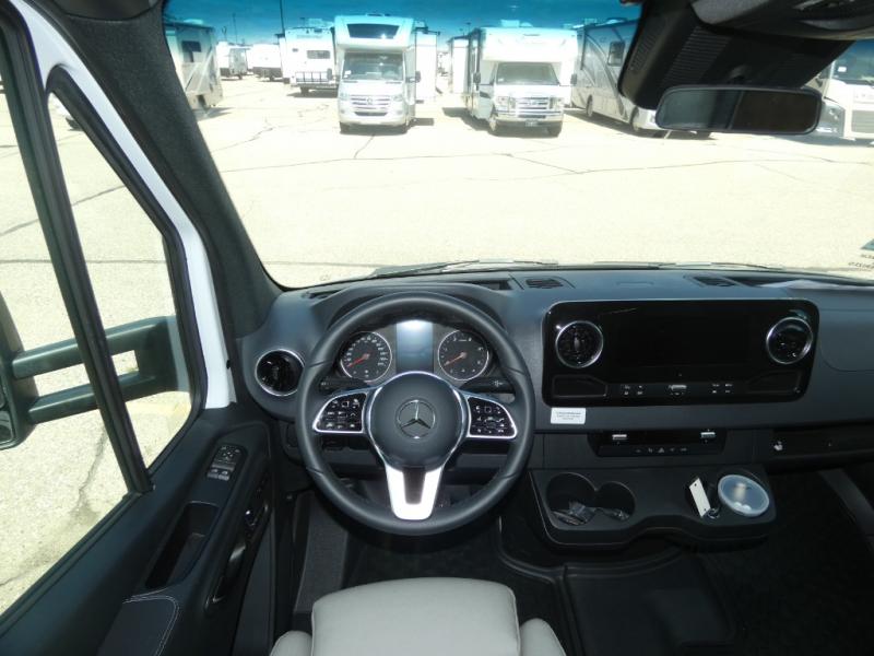With any Wayfarer Class C diesel coach by Tiffin Motorhomes you will enjoy luxury features both inside and out. There are one-piece molded gel-coat fiberglass front and rear caps plus full-body paint and two layers of clear coat for added protection. The Mercedes-Benz 3500XD dual wheel cutaway chassis provides a strong foundation, and the 2.0L V4 turbo diesel high output 208 HP diesel engine with 332 lb-ft torque will keep you going adventure after adventure! You will love the drive just as much as the destination with adjustable captain's seats that are also heated, intelligent navigation, and a Mercedes-Benz MBUX multimedia system with a 10.25" touchscreen. Wherever you decide to roam, you will be met with interior comforts that include handcrafted overhead cabinetry, solar and privacy shades, solid surface galley countertops and task lighting, and a wardrobe in the bedroom to keep your space tidy.