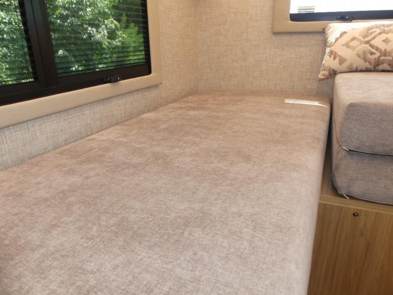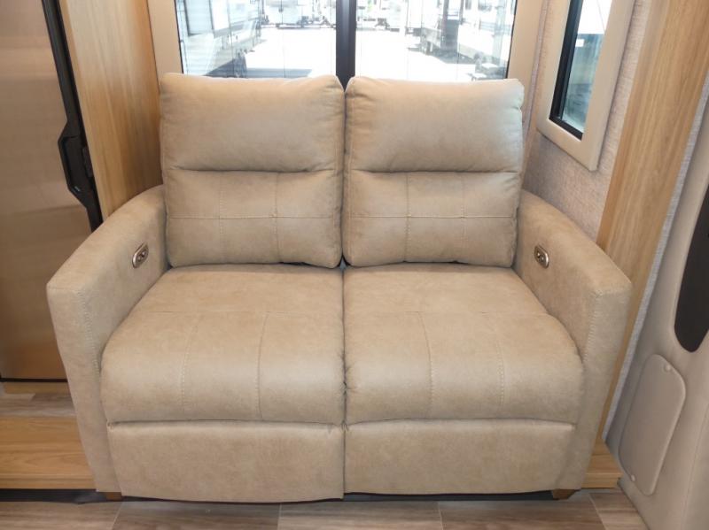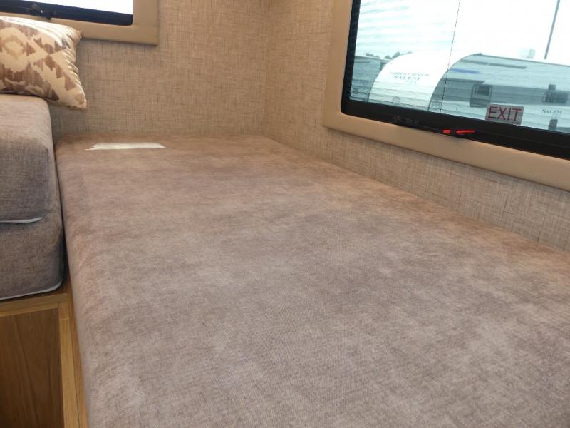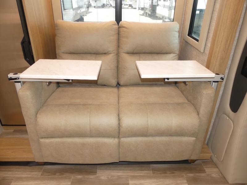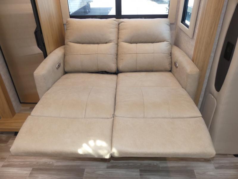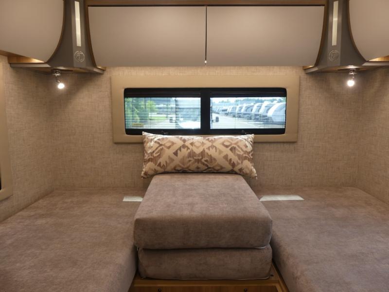 Head out to explore whenever the mood hits you! This coach provides a comfortable and luxurious way to travel from the cab features to the sleeping accommodations. The driver and passenger will have a tray for smartphones with charging ports, heated/electric adjustable mirrors, heated seats. You can dine at the tri-fold sofa after whipping up a meal using the kitchen appliances including a stainless steel convection microwave. The split bathroom includes a shower along one side and a private toilet and sink on the opposite so two people can get ready at the same time. At night, fall quickly to sleep on the rear twin beds which allow you easy access to the bathroom, plus the nightstand will come in handy to place your cellphones and drinks. You will also find overhead cabinets for storage.