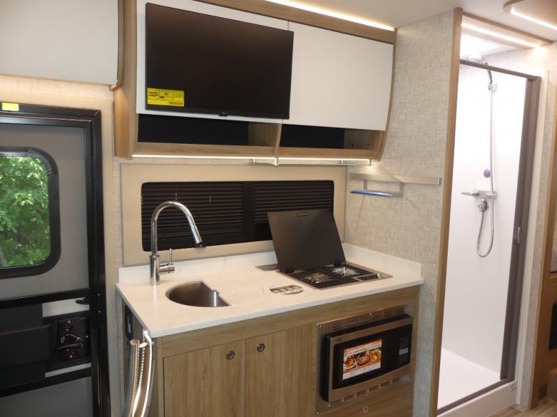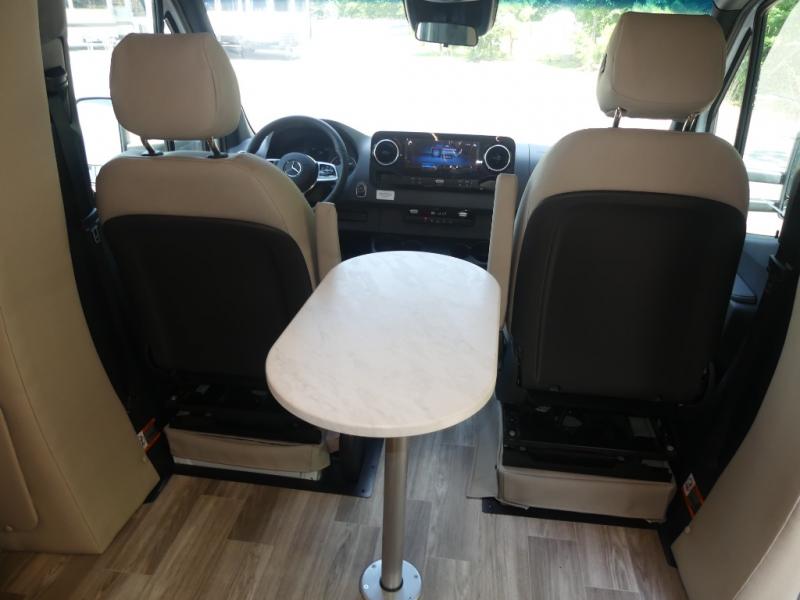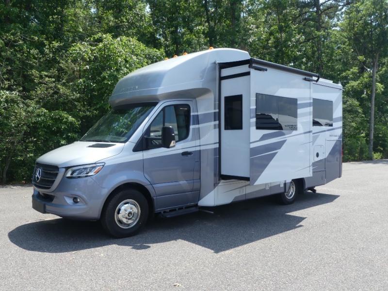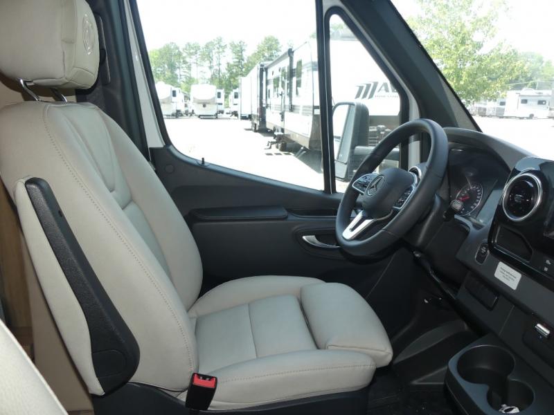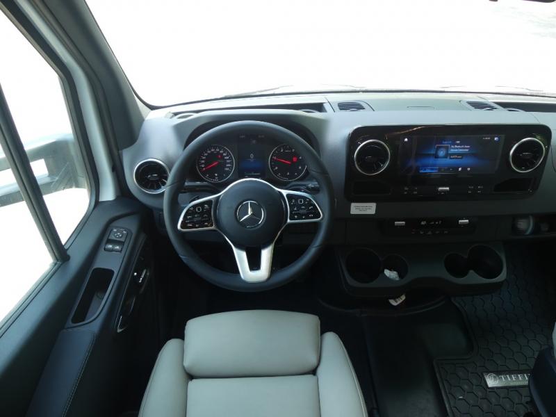 With any Wayfarer Class C diesel coach by Tiffin Motorhomes you will enjoy luxury features both inside and out. There are one-piece molded gel-coat fiberglass front and rear caps plus full-body paint and two layers of clear coat for added protection. The Mercedes-Benz 3500XD dual wheel cutaway chassis provides a strong foundation, and the 2.0L V4 turbo diesel high output 208 HP diesel engine with 332 lb-ft torque will keep you going adventure after adventure! You will love the drive just as much as the destination with adjustable captain's seats that are also heated, intelligent navigation, and a Mercedes-Benz MBUX multimedia system with a 10.25" touchscreen. Wherever you decide to roam, you will be met with interior comforts that include handcrafted overhead cabinetry, solar and privacy shades, solid surface galley countertops and task lighting, and a wardrobe in the bedroom to keep your space tidy.