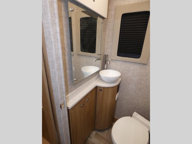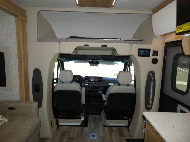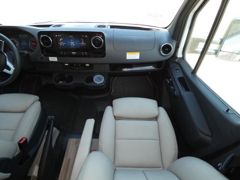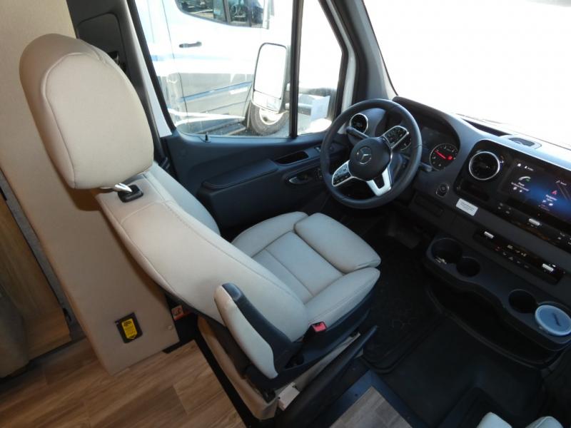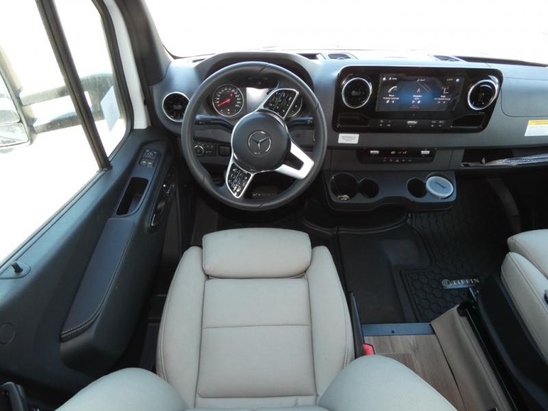 With any Wayfarer Class C diesel coach by Tiffin Motorhomes you will enjoy luxury features both inside and out. There are one-piece molded gel-coat fiberglass front and rear caps plus full-body paint and two layers of clear coat for added protection. The Mercedes-Benz 3500XD dual wheel cutaway chassis provides a strong foundation, and the 2.0L V4 turbo diesel high output 208 HP diesel engine with 332 lb-ft torque will keep you going adventure after adventure! You will love the drive just as much as the destination with adjustable captain's seats that are also heated, intelligent navigation, and a Mercedes-Benz MBUX multimedia system with a 10.25" touchscreen. Wherever you decide to roam, you will be met with interior comforts that include handcrafted overhead cabinetry, solar and privacy shades, solid surface galley countertops and task lighting, and a wardrobe in the bedroom to keep your space tidy.