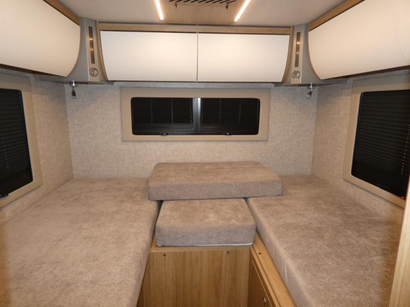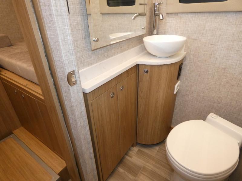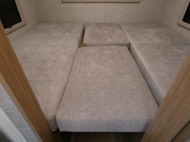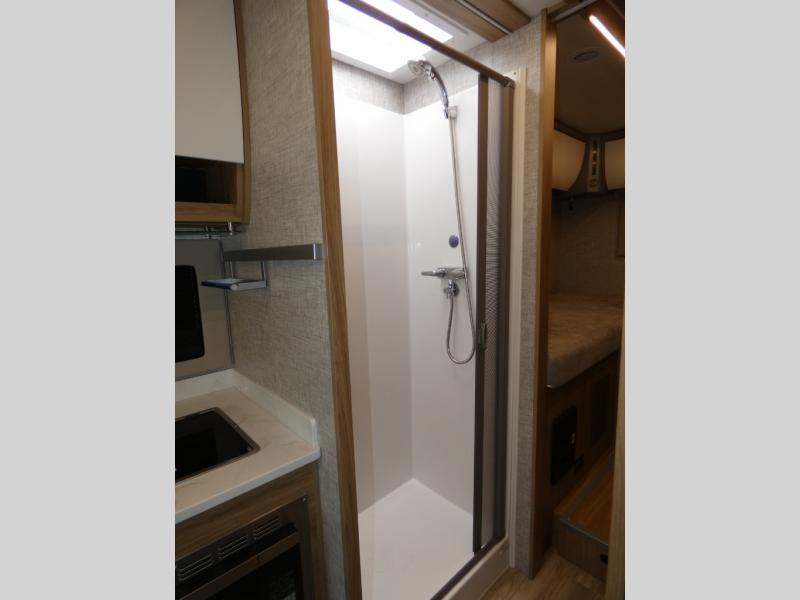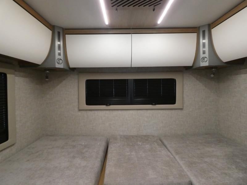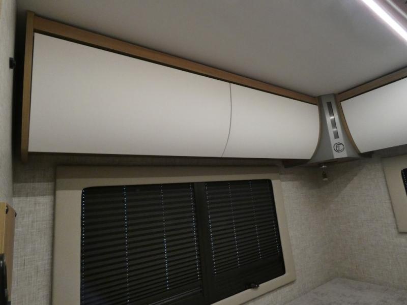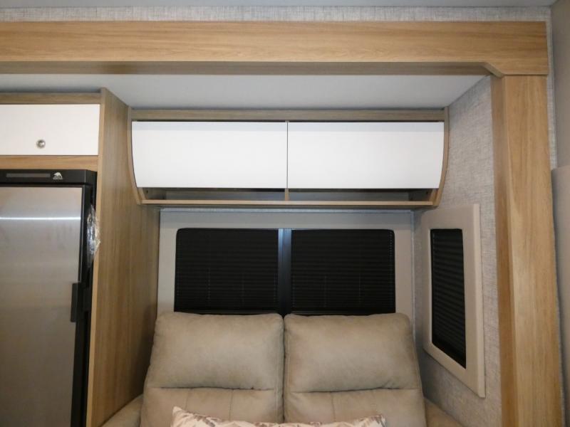 Head out to explore whenever the mood hits you! This coach provides a comfortable and luxurious way to travel from the cab features to the sleeping accommodations. The driver and passenger will have a tray for smartphones with charging ports, heated/electric adjustable mirrors, heated seats, and they might like to add the side-view cameras option. You can dine at the tri-fold sofa after whipping up a meal using the kitchen appliances including a stainless steel convection microwave. The split bathroom includes a shower along one side and a private toilet and sink on the opposite so two people can get ready at the same time. At night, fall quickly to sleep on the rear twin beds which allow you easy access to the bathroom, plus the nightstand will come in handy to place your cellphones and drinks. You will also find overhead cabinets for storage, and you might like to add an optional TV to watch.
