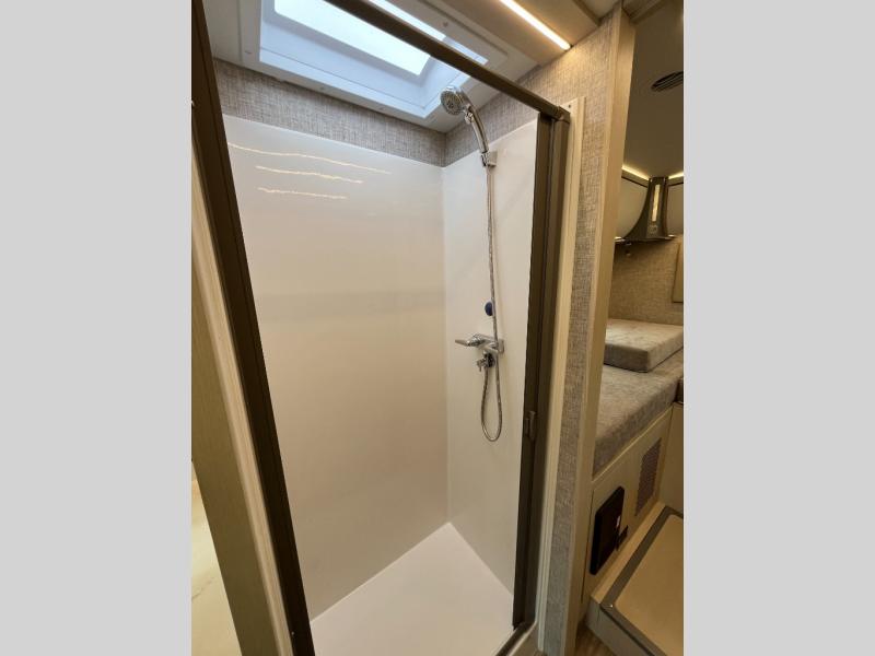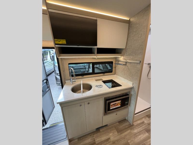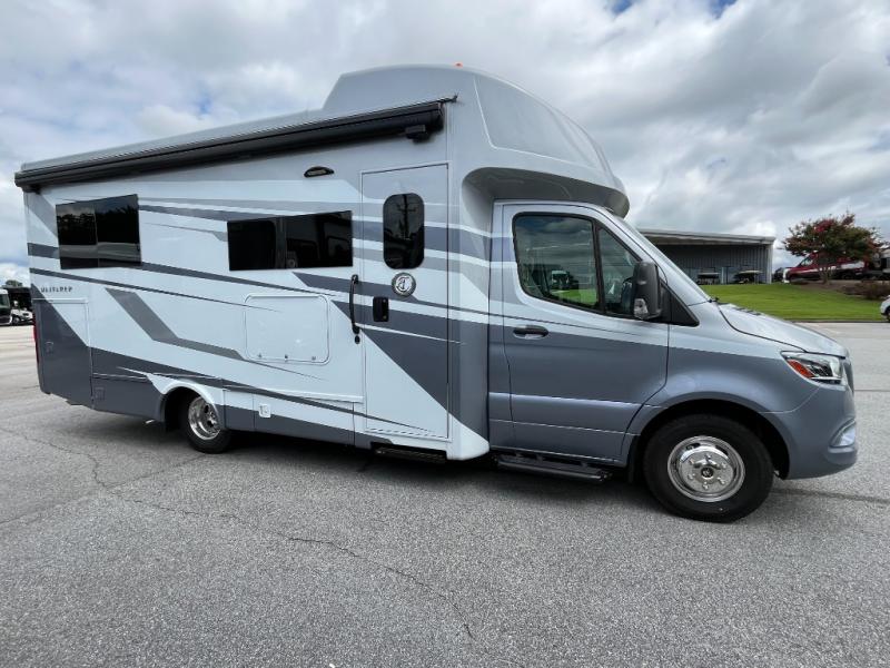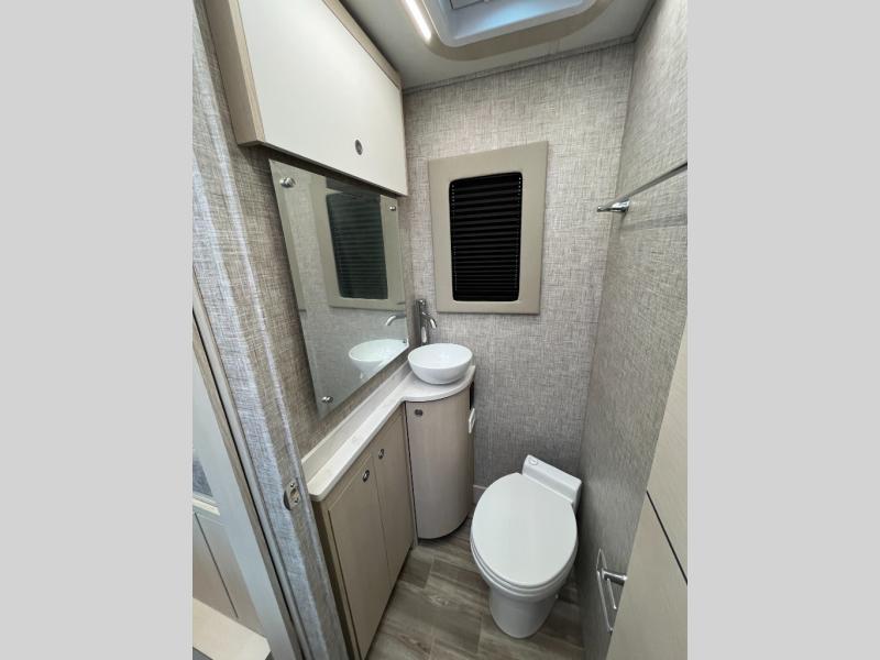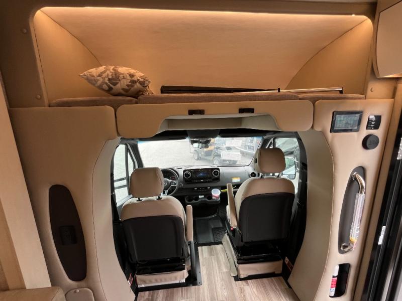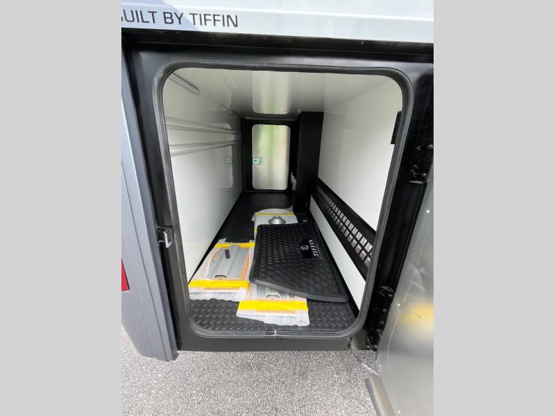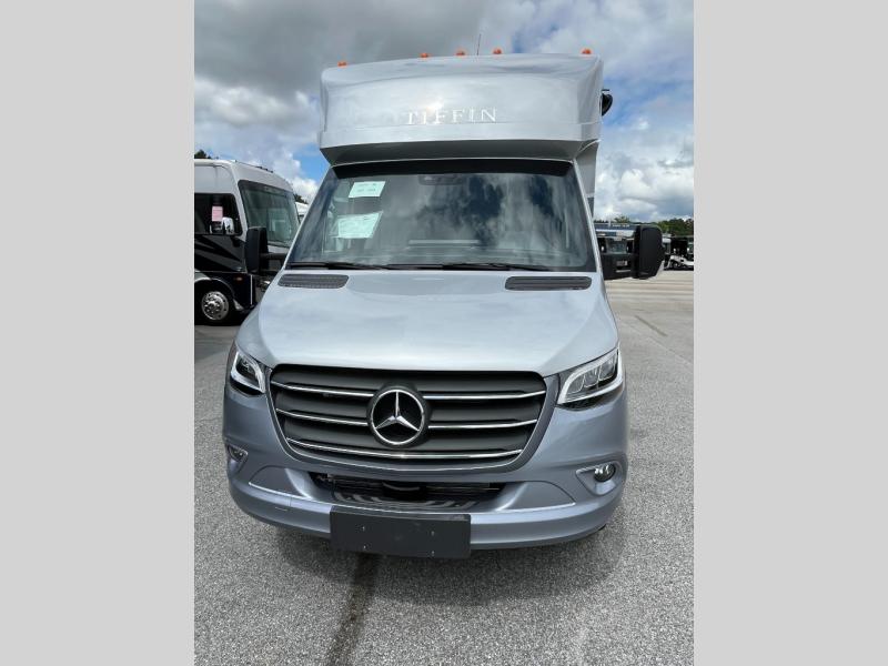 With any Wayfarer Class C diesel coach by Tiffin Motorhomes you will enjoy luxury features both inside and out. There are one-piece molded gel-coat fiberglass front and rear caps plus full-body paint and two layers of clear coat for added protection. The Mercedes-Benz 3500XD dual wheel cutaway chassis provides a strong foundation, and the 2.0L V4 turbo diesel high output 208 HP diesel engine with 332 lb-ft torque will keep you going adventure after adventure! You will love the drive just as much as the destination with adjustable captain's seats that are also heated, intelligent navigation, and a Mercedes-Benz MBUX multimedia system with a 10.25" touchscreen. Wherever you decide to roam, you will be met with interior comforts that include handcrafted overhead cabinetry, solar and privacy shades, solid surface galley countertops and task lighting, and a wardrobe in the bedroom to keep your space tidy.