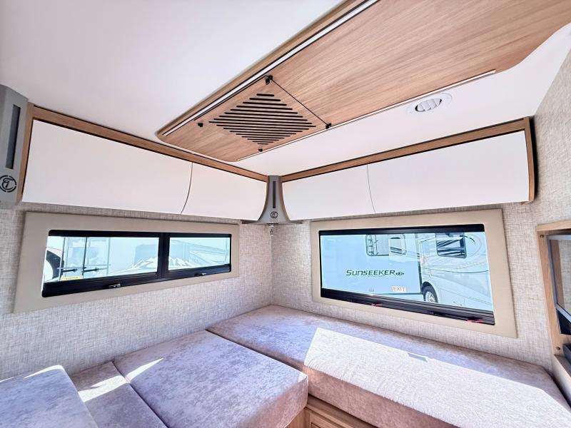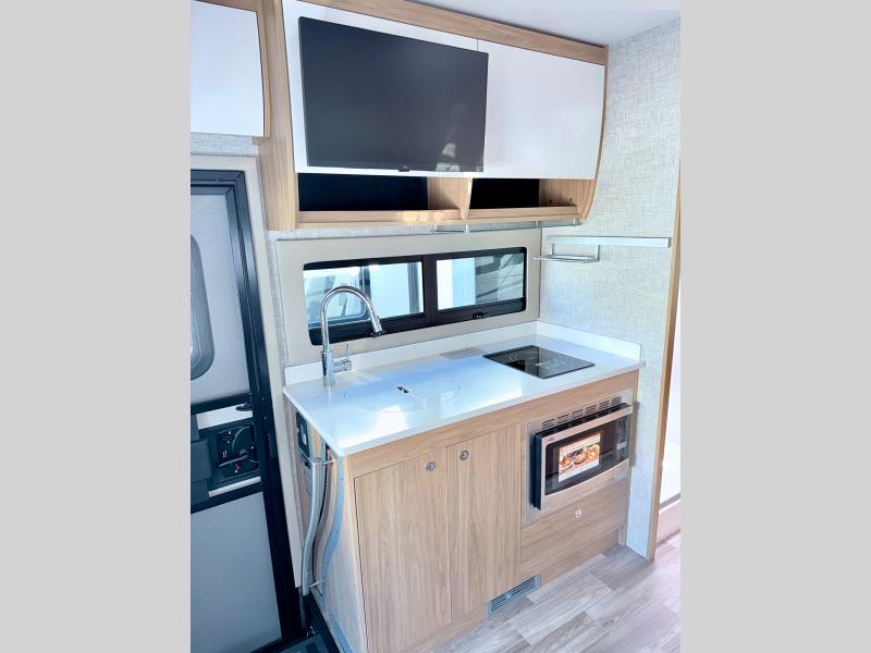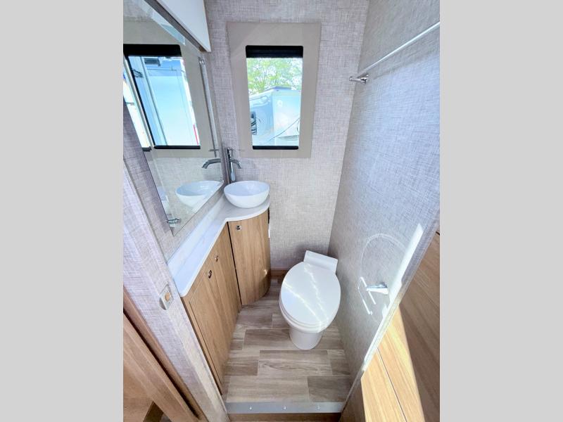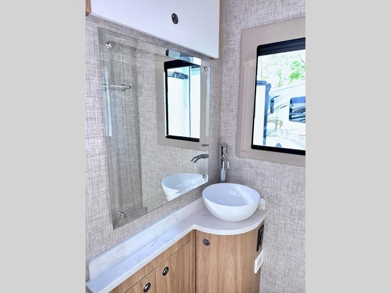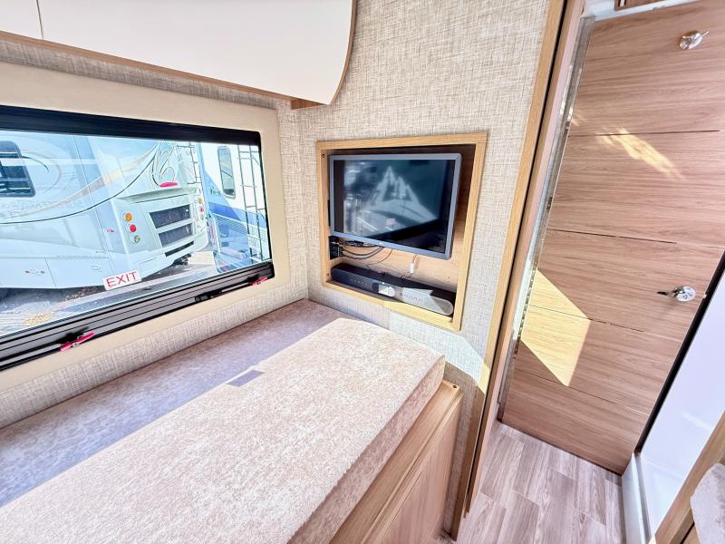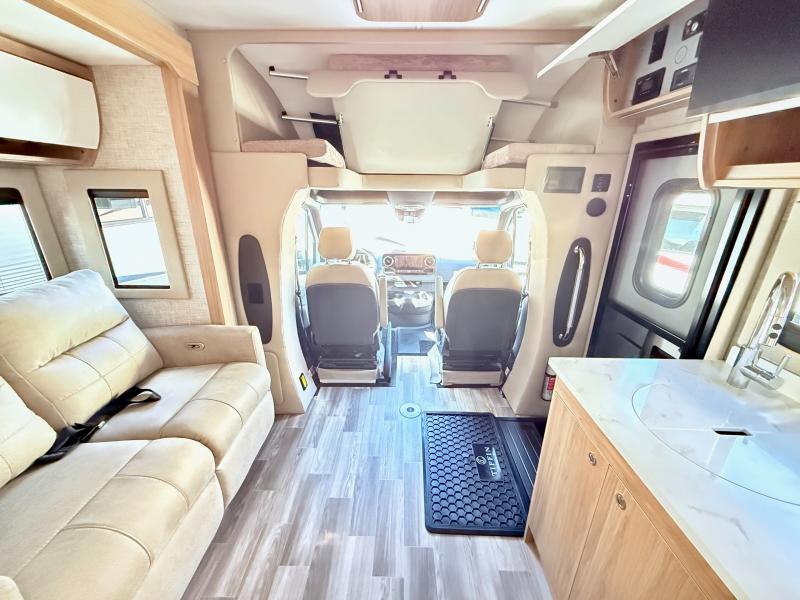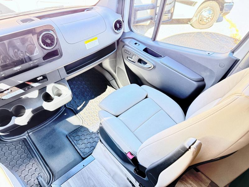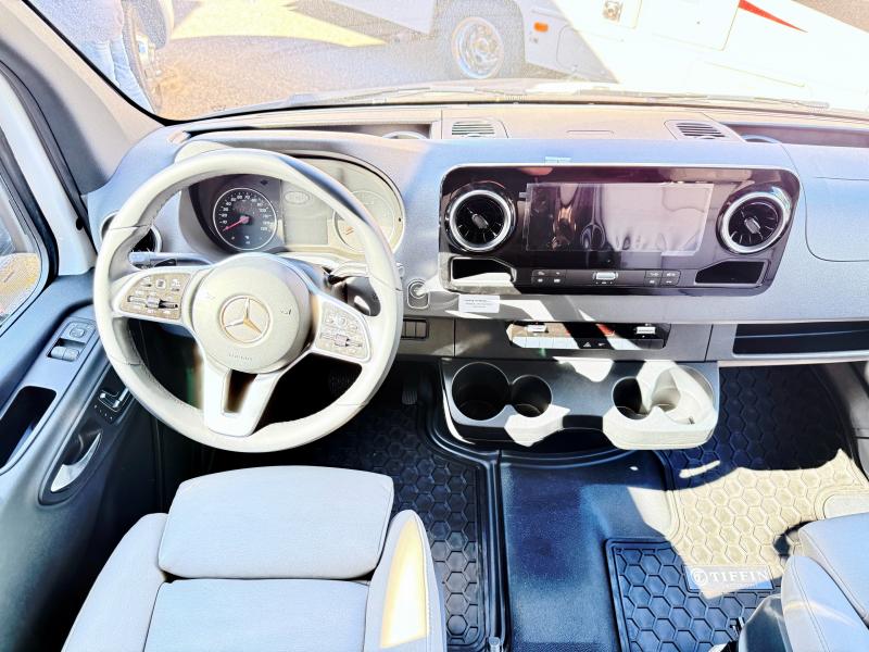 With any Wayfarer Class C diesel coach by Tiffin Motorhomes you will enjoy luxury features both inside and out. There are one-piece molded gel-coat fiberglass front and rear caps plus full-body paint and two layers of clear coat for added protection. The Mercedes-Benz 3500XD dual wheel cutaway chassis provides a strong foundation, and the 2.0L V4 turbo diesel high output 208 HP diesel engine with 332 lb-ft torque will keep you going adventure after adventure! You will love the drive just as much as the destination with adjustable captain's seats that are also heated, intelligent navigation, and a Mercedes-Benz MBUX multimedia system with a 10.25" touchscreen. Wherever you decide to roam, you will be met with interior comforts that include handcrafted overhead cabinetry, solar and privacy shades, solid surface galley countertops and task lighting, and a wardrobe in the bedroom to keep your space tidy.