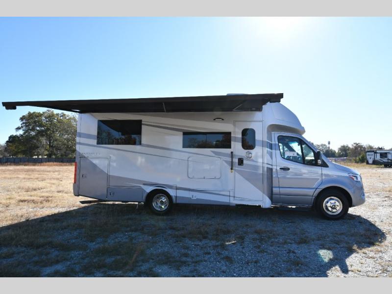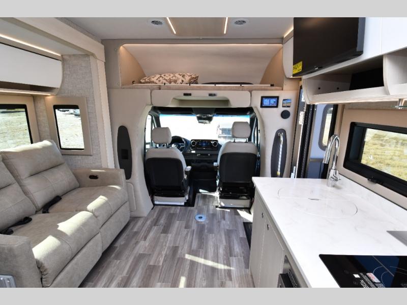 Silver Sand Paint 2023 • Mercedes 208HP 4 Cylinder • Phantom Ecru Cabinets • Grandview Interior • 2DR 5.3 cu. ft. Electric Refrigerator • (1) 15K Mid A/C • Aluminum Wheels • Bedroom TV • Complete 200W Solar System • Generation 7 Exterior Paint Scheme • 4.0 LP Generator • Hydraunic Heating System • Induction Cooktop • 2000W Inverter • Lithium Battery Drop-In Solution • Exterior LCD TV • Front TV • Overhead Bunk • Side View Cameras • Snowhill Dove Leatherette • Theatre Seating DS