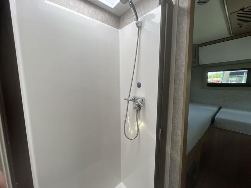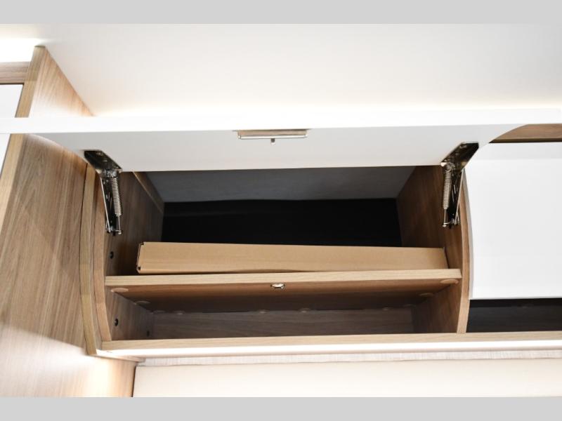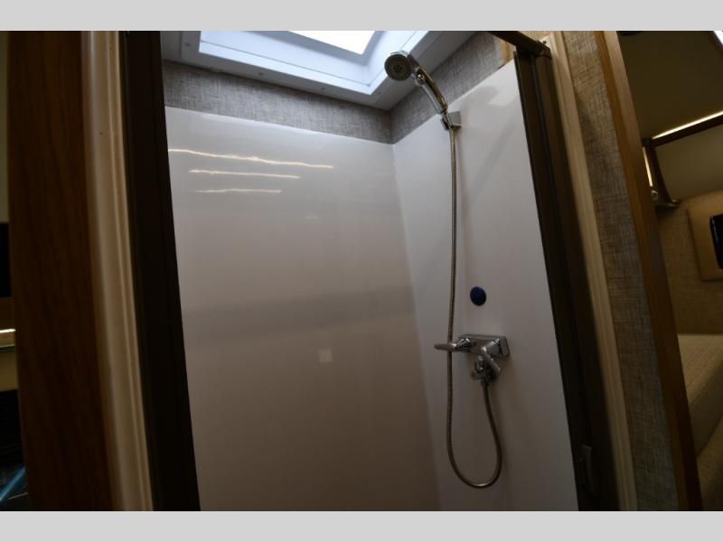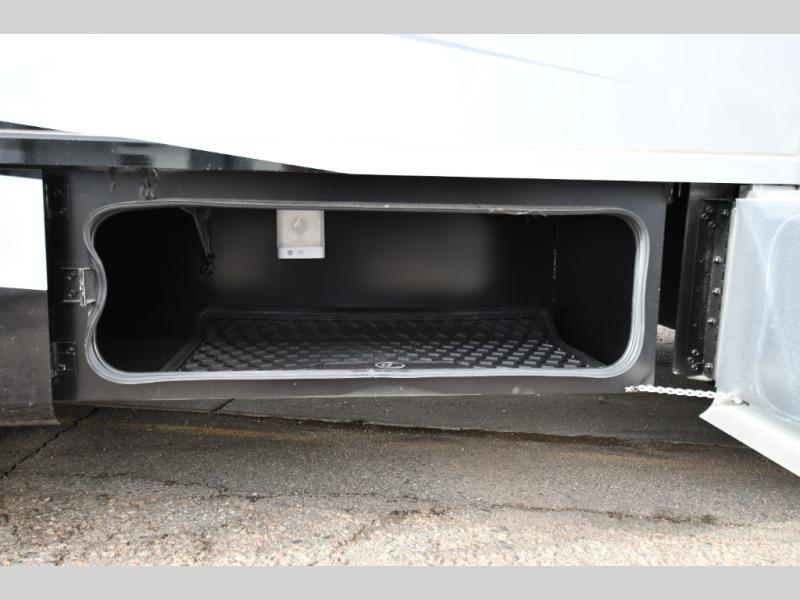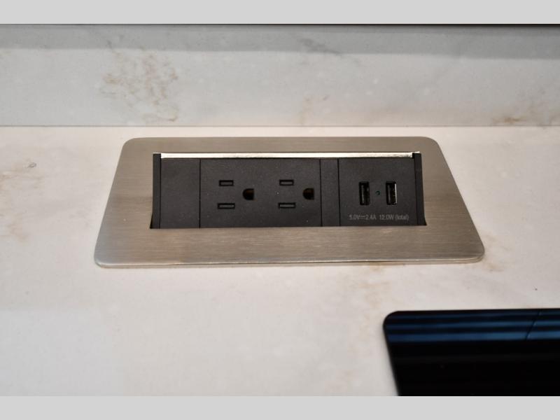Head out to explore whenever the mood hits you! This coach provides a comfortable and luxurious way to travel from the cab features to the sleeping accommodations. The driver and passenger will have a tray for smartphones with charging ports, heated/electric adjustable mirrors, heated seats, and they might like to add the side-view cameras option. You can dine at the tri-fold sofa after whipping up a meal using the kitchen appliances including a stainless steel convection microwave. The split bathroom includes a shower along one side and a private toilet and sink on the opposite so two people can get ready at the same time. At night, fall quickly to sleep on the rear twin beds which allow you easy access to the bathroom, plus the nightstand will come in handy to place your cellphones and drinks. You will also find overhead cabinets for storage, and you might like to add an optional TV to watch.