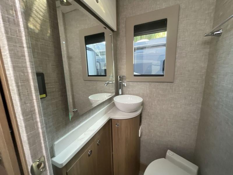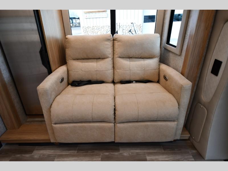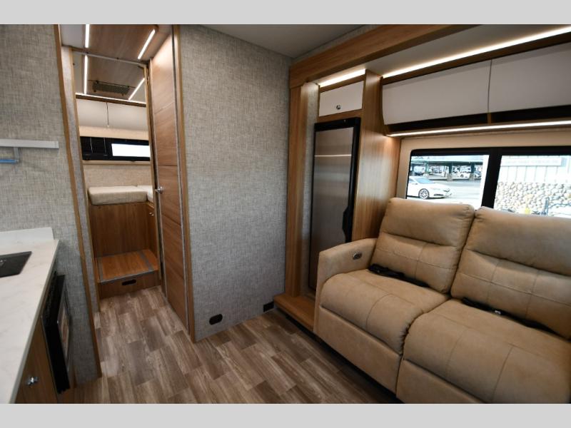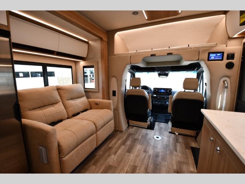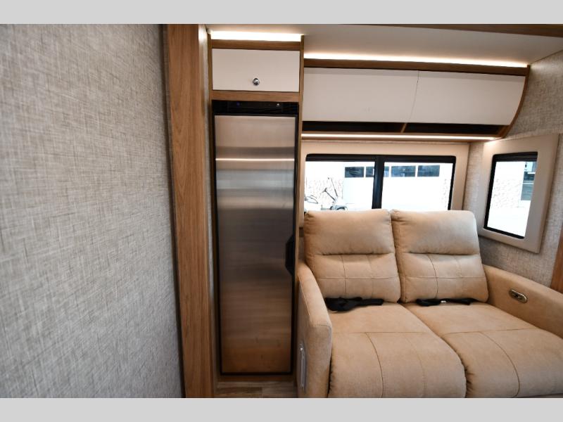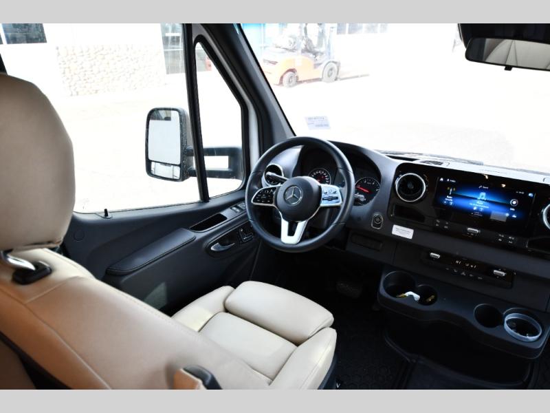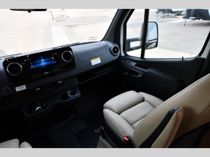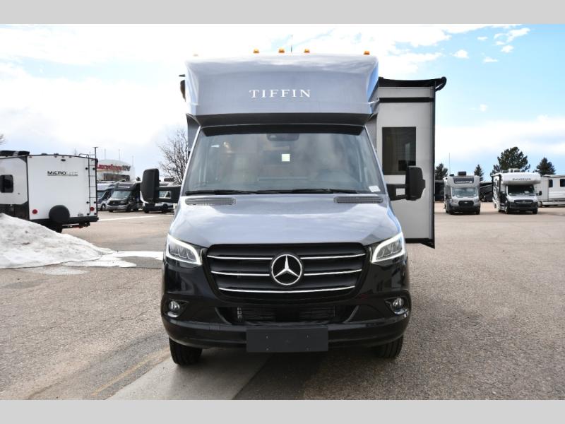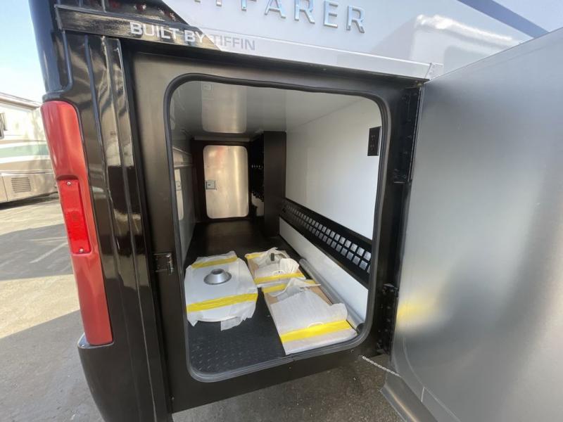 With any Wayfarer Class C diesel coach by Tiffin Motorhomes you will enjoy luxury features both inside and out. There are one-piece molded gel-coat fiberglass front and rear caps plus full-body paint and two layers of clear coat for added protection. The Mercedes-Benz 3500XD dual wheel cutaway chassis provides a strong foundation, and the 2.0L V4 turbo diesel high output 208 HP diesel engine with 332 lb-ft torque will keep you going adventure after adventure! You will love the drive just as much as the destination with adjustable captain's seats that are also heated, intelligent navigation, and a Mercedes-Benz MBUX multimedia system with a 10.25" touchscreen. Wherever you decide to roam, you will be met with interior comforts that include handcrafted overhead cabinetry, solar and privacy shades, solid surface galley countertops and task lighting, and a wardrobe in the bedroom to keep your space tidy.