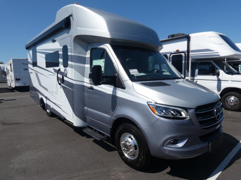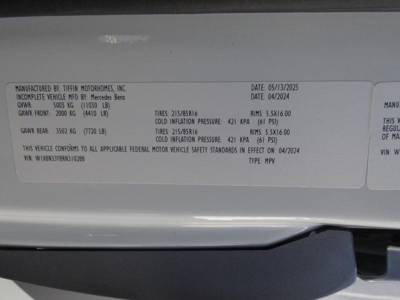 With any Wayfarer Class C diesel coach by Tiffin Motorhomes you will enjoy luxury features both inside and out. There are one-piece molded gel-coat fiberglass front and rear caps plus full-body paint and two layers of clear coat for added protection. The Mercedes-Benz 3500XD dual wheel cutaway chassis provides a strong foundation, and the 2.0L V4 turbo diesel high output 208 HP diesel engine with 332 lb-ft torque will keep you going adventure after adventure! You will love the drive just as much as the destination with adjustable captain's seats that are also heated, intelligent navigation, and a Mercedes-Benz MBUX multimedia system with a 10.25" touchscreen. Wherever you decide to roam, you will be met with interior comforts that include handcrafted overhead cabinetry, solar and privacy shades, solid surface galley countertops and task lighting, and a wardrobe in the bedroom to keep your space tidy.