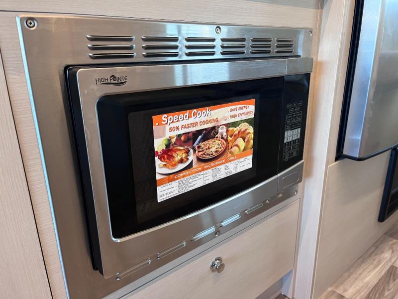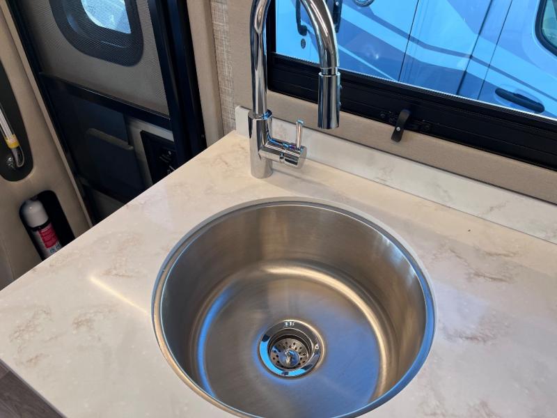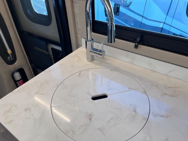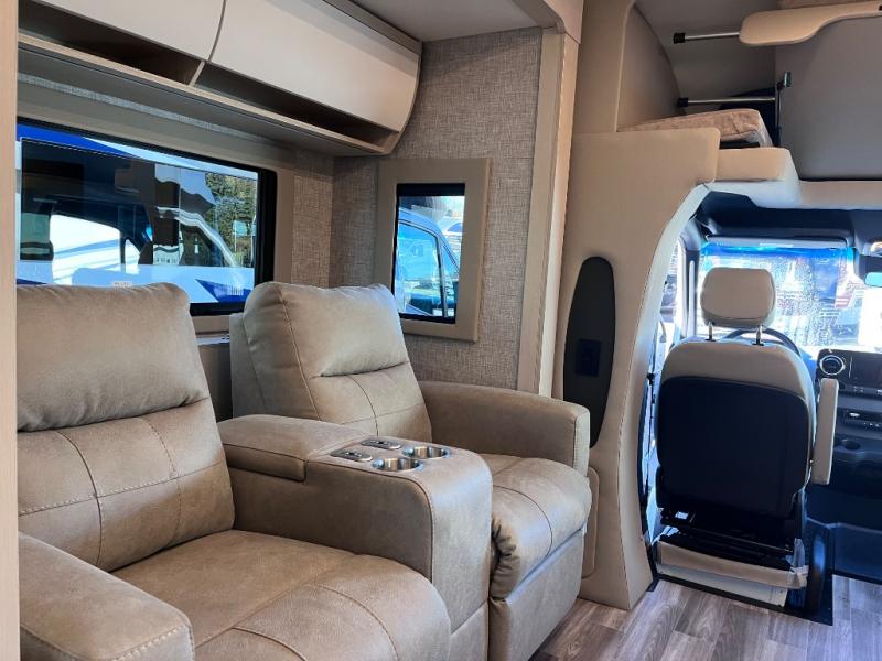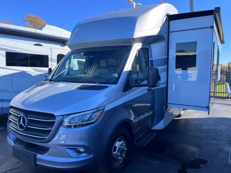 With any Wayfarer Class C diesel coach by Tiffin Motorhomes you will enjoy luxury features both inside and out. There are one-piece molded gel-coat fiberglass front and rear caps plus full-body paint and two layers of clear coat for added protection. The Mercedes-Benz 3500XD dual wheel cutaway chassis provides a strong foundation, and the 2.0L V4 turbo diesel high output 208 HP diesel engine with 332 lb-ft torque will keep you going adventure after adventure! You will love the drive just as much as the destination with adjustable captain's seats that are also heated, intelligent navigation, and a Mercedes-Benz MBUX multimedia system with a 10.25" touchscreen. Wherever you decide to roam, you will be met with interior comforts that include handcrafted overhead cabinetry, solar and privacy shades, solid surface galley countertops and task lighting, and a wardrobe in the bedroom to keep your space tidy.