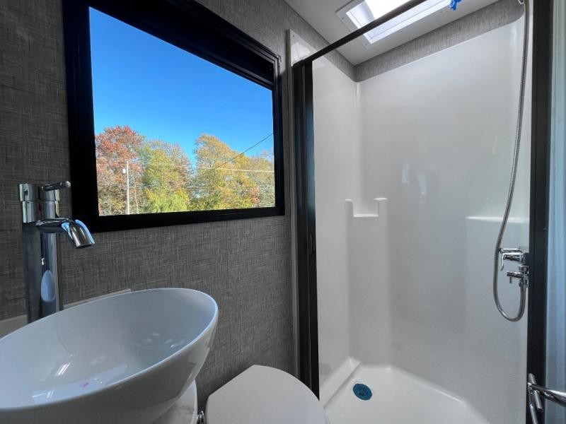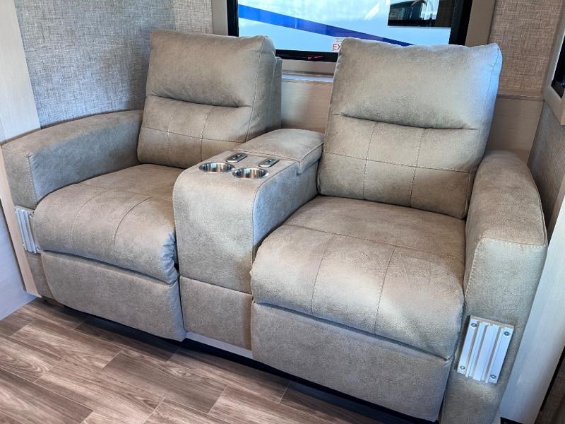 Experience unparalleled freedom and luxury with your favorite person in the most amazing motorhome, perfect to see nature along the highways and wherever the road takes you! You will find the perfect place to rest in the extra comfy king bed, there are nightstands and a spacious wardrobe for keeping all your belongings organized. In front of it, you will enjoy the convenience of the full bathroom, which features a 32” x 36” shower and has everything you need to unwind and relax when taking a bath. Cooking has never been easier thanks to the incredible kitchen, boasting a pantry, refrigerator, microwave, and a U-shape dinette where you can comfortably eat your meals, play board games, or have an entertaining time with your loved ones.