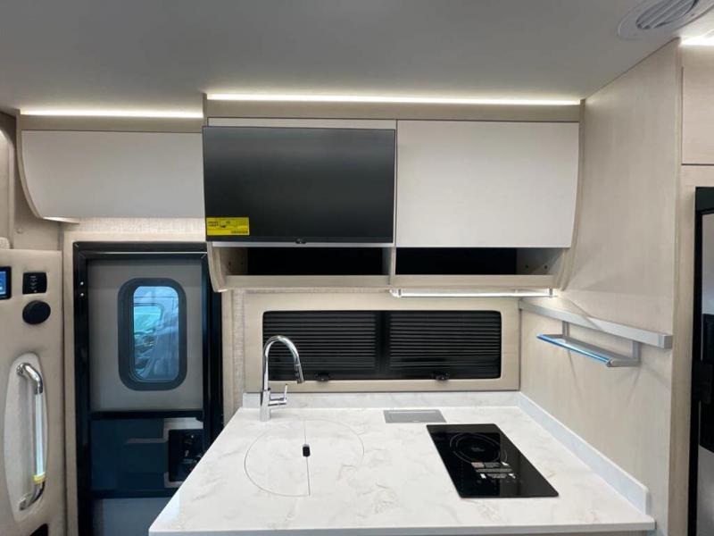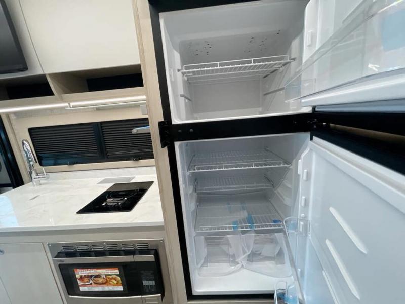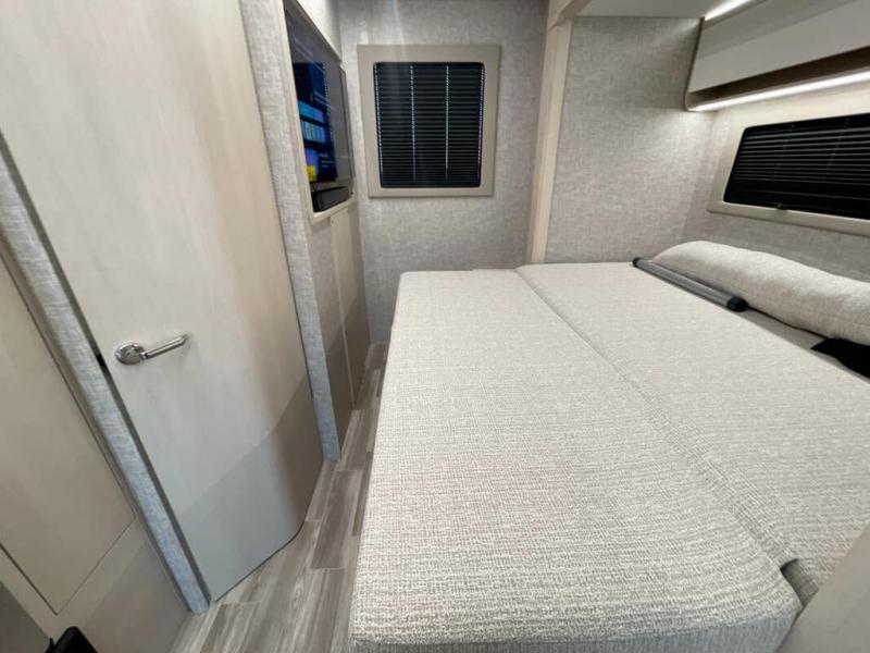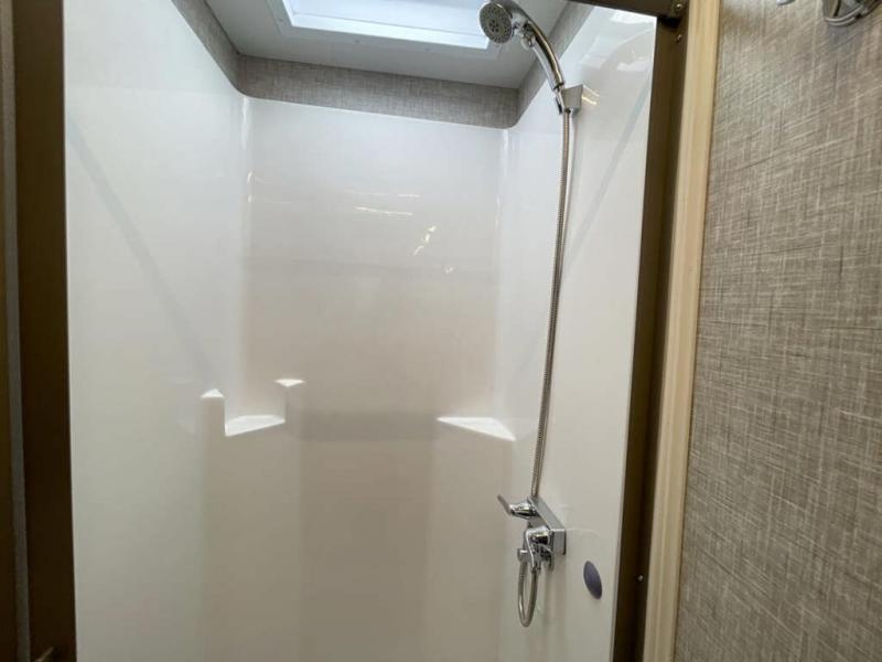 Experience unparalleled freedom and luxury with your favorite person in the most amazing motorhome, perfect to see nature along the highways and wherever the road takes you! You will find the perfect place to rest in the extra comfy king bed, there are nightstands and a spacious wardrobe for keeping all your belongings organized. In front of it, you will enjoy the convenience of the full bathroom, which features a 32” x 36” shower and has everything you need to unwind and relax when taking a bath. Cooking has never been easier thanks to the incredible kitchen, boasting a pantry, refrigerator, microwave, and a U-shape dinette where you can comfortably eat your meals, play board games, or have an entertaining time with your loved ones.