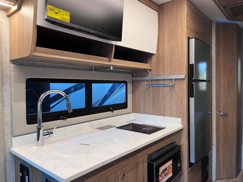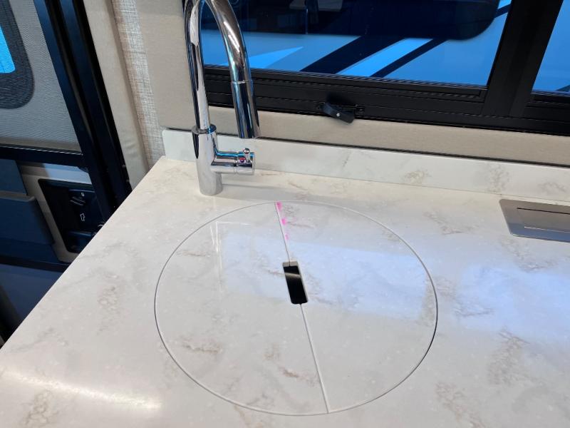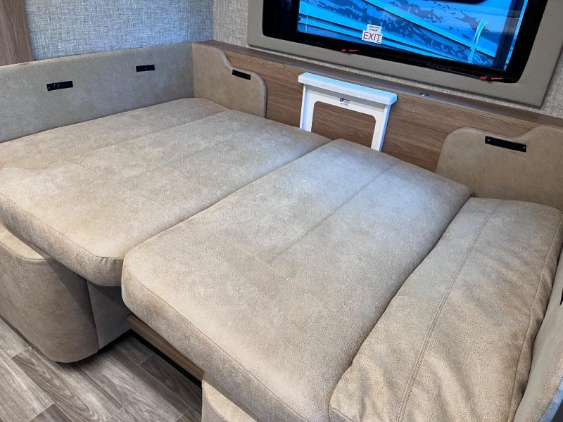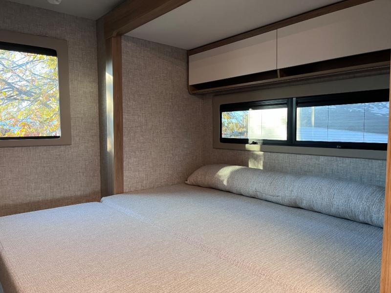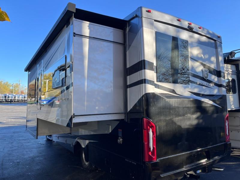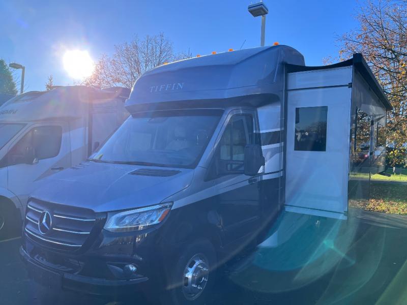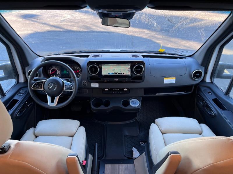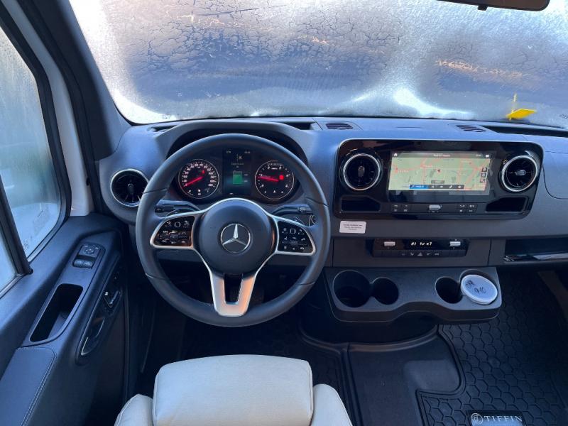 With any Wayfarer Class C diesel coach by Tiffin Motorhomes you will enjoy luxury features both inside and out. There are one-piece molded gel-coat fiberglass front and rear caps plus full-body paint and two layers of clear coat for added protection. The Mercedes-Benz 3500XD dual wheel cutaway chassis provides a strong foundation, and the 2.0L V4 turbo diesel high output 208 HP diesel engine with 332 lb-ft torque will keep you going adventure after adventure! You will love the drive just as much as the destination with adjustable captain's seats that are also heated, intelligent navigation, and a Mercedes-Benz MBUX multimedia system with a 10.25" touchscreen. Wherever you decide to roam, you will be met with interior comforts that include handcrafted overhead cabinetry, solar and privacy shades, solid surface galley countertops and task lighting, and a wardrobe in the bedroom to keep your space tidy.